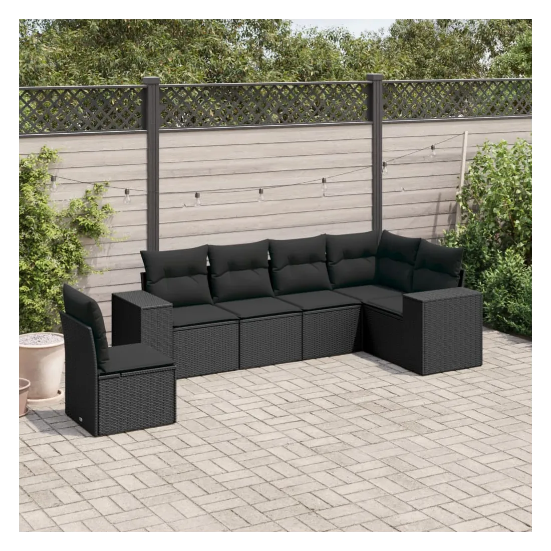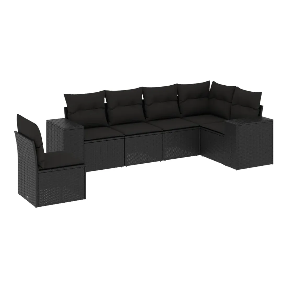 Salon de jardin 6 pcs avec coussins noir résine tressée