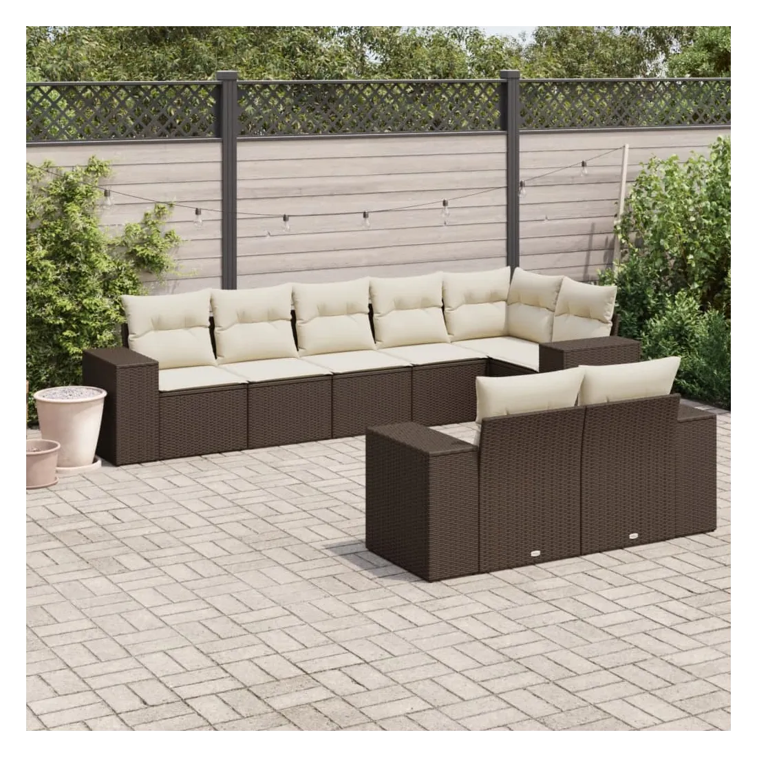 Cet ensemble de canapés de jardin est le complément parfait de votre arrière-cour, terrasse ou patio, offrant un espace confortable et accueillant pour discuter avec la famille et les amis ou simplement se détendre et profiter de l'extérieur. Matériau durable : la résine tressée, également connue sous le nom de poly rotin, est un matériau synthétique solide et nécessitant peu d'entretien qui ressemble au rotin naturel. Il est léger, facile à nettoyer et couramment utilisé pour les meubles d'extérieur en raison de sa durabilité et de ses propriétés de résistance aux intempéries.Expérience d'assise confortable : ce mobilier d'extérieur, doté de coussins épais, offre une expérience d'assise confortable.Housse amovible et lavable : ces coussins de siège sont dotés de housses amovibles pour un lavage et un entretien faciles.Conception modulaire : cet ensemble de meubles d'extérieur a une conception modulaire, ce qui le rend complètement flexible et facile à déplacer, afin que vous puissiez créer un agencement de meubles d'extérieur personnalisé. Bon à savoir :Pour que vos meubles d'extérieur restent beaux, nous vous recommandons de les protéger avec une housse imperméable.