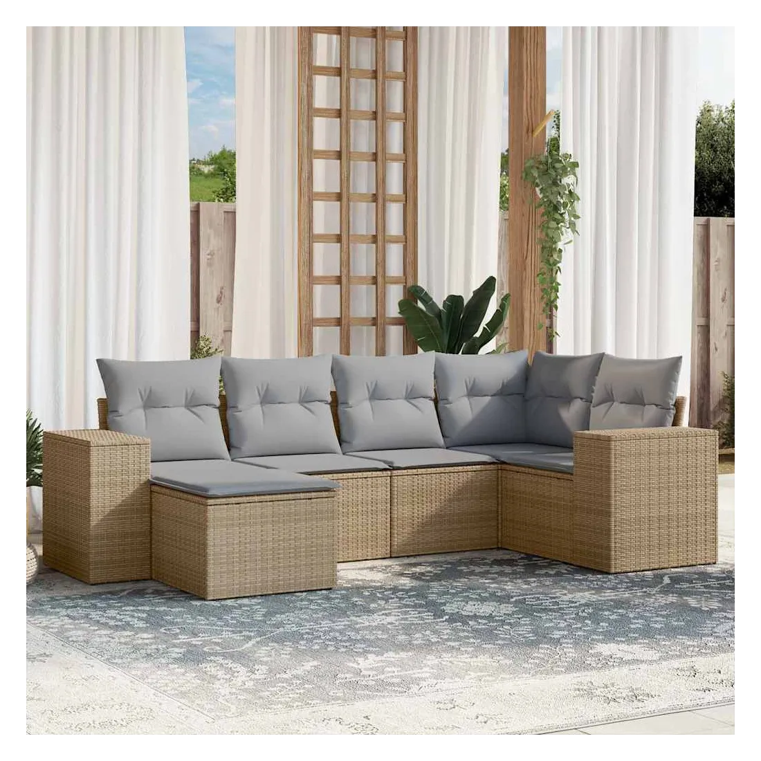 Cet ensemble de canapés de jardin est le complément parfait de votre arrière-cour, terrasse ou patio, offrant un espace confortable et accueillant pour discuter avec la famille et les amis ou simplement se détendre et profiter de l'extérieur. Matériau durable : la résine tressée, également connue sous le nom de poly rotin, est un matériau synthétique solide et nécessitant peu d'entretien qui ressemble au rotin naturel. Il est léger, facile à nettoyer et couramment utilisé pour les meubles d'extérieur en raison de sa durabilité et de ses propriétés de résistance aux intempéries.Expérience d'assise confortable : ce mobilier d'extérieur, doté de coussins épais, offre une expérience d'assise confortable.Housse amovible et lavable : ces coussins de siège sont dotés de housses amovibles pour un lavage et un entretien faciles.Conception modulaire : cet ensemble de meubles d'extérieur a une conception modulaire, ce qui le rend complètement flexible et facile à déplacer, afin que vous puissiez créer un agencement de meubles d'extérieur personnalisé. Bon à savoir :Pour que vos meubles d'extérieur restent beaux, nous vous recommandons de les protéger avec une housse imperméable.