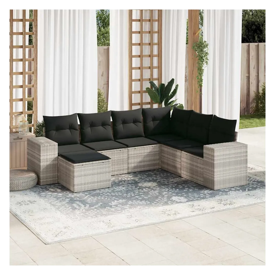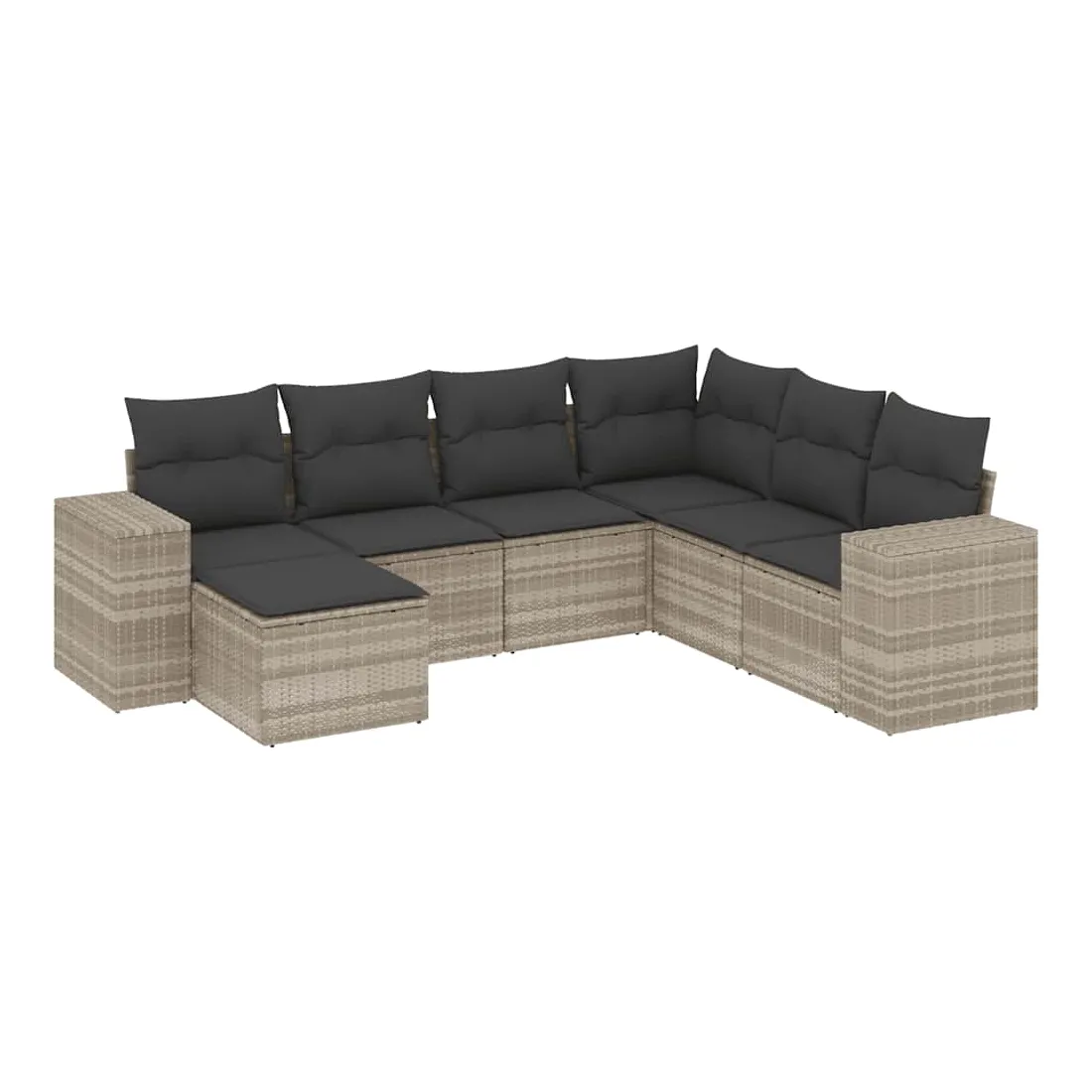 Salon de jardin avec coussins 7 pcs gris clair résine tressée