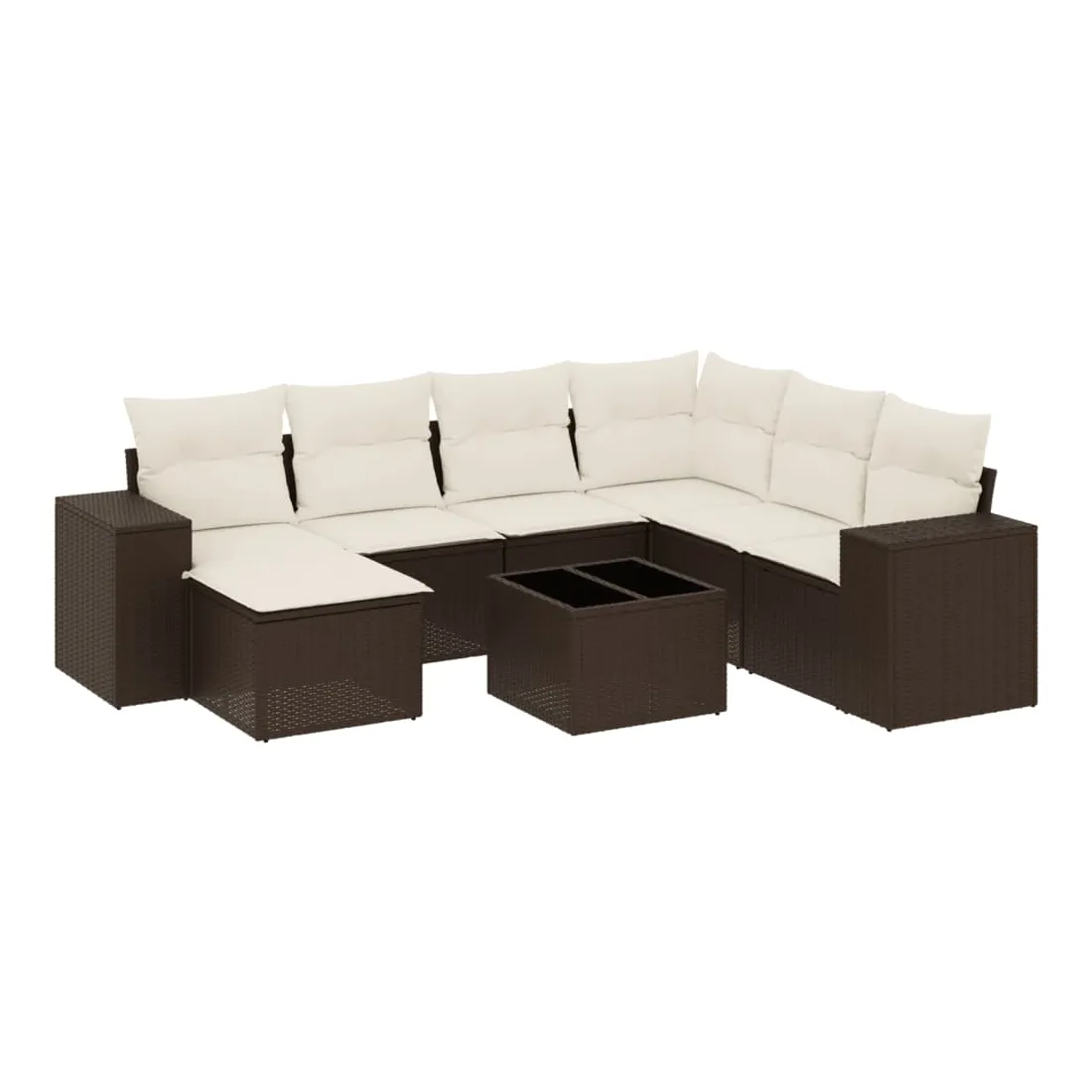 Salon de jardin 8 pcs avec coussins marron résine tressée