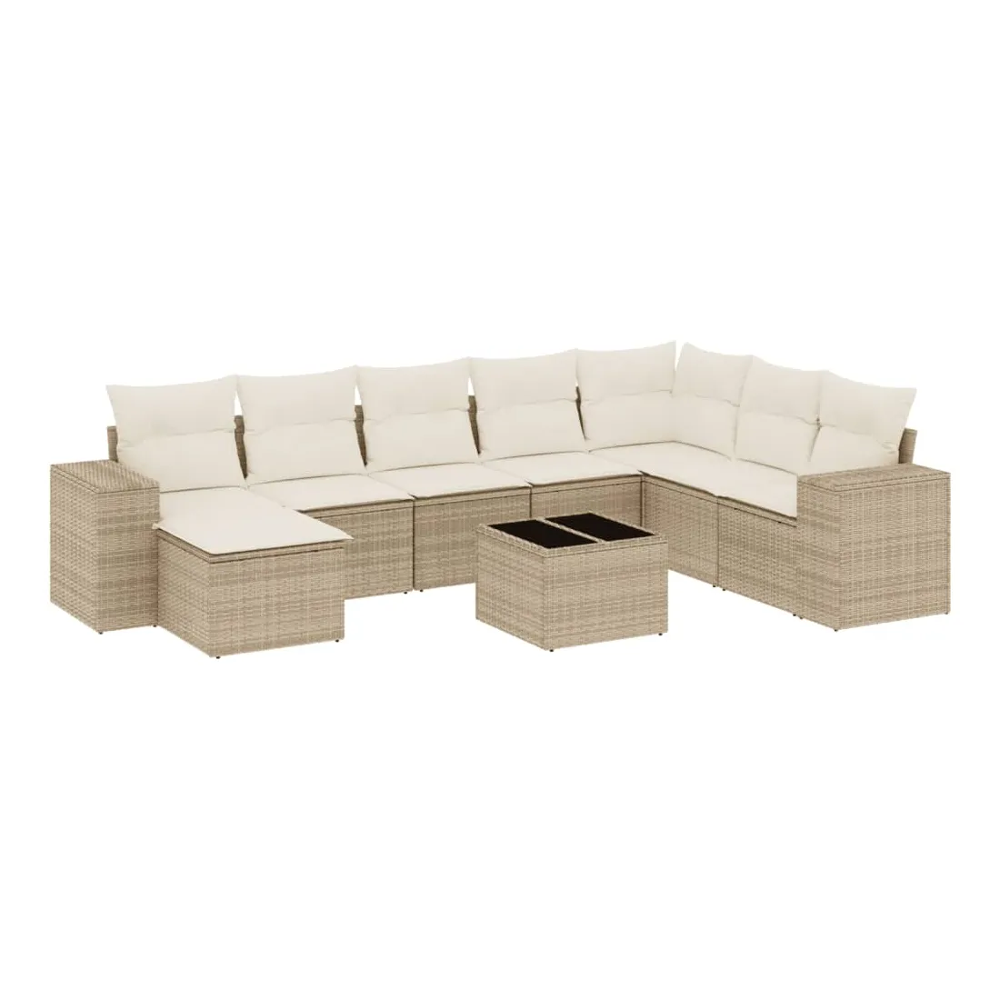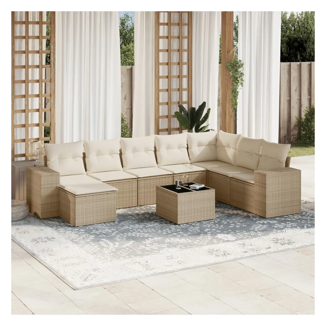 Cet ensemble de canapés de jardin est le complément parfait de votre arrière-cour, terrasse ou patio, offrant un espace confortable et accueillant pour discuter avec la famille et les amis ou simplement se détendre et profiter de l'extérieur. Matériau durable : la résine tressée, également connue sous le nom de poly rotin, est un matériau synthétique solide et nécessitant peu d'entretien qui ressemble au rotin naturel. Il est léger, facile à nettoyer et couramment utilisé pour les meubles d'extérieur en raison de sa durabilité et de ses propriétés de résistance aux intempéries.Expérience d'assise confortable : ce mobilier d'extérieur, doté de coussins épais, offre une expérience d'assise confortable.Dessus en verre : le dessus de la table d'extérieur est fabriqué en verre trempé solide et durable, ce qui le rend facile à nettoyer avec un chiffon humide et ajoute une touche d'élégance à votre espace extérieur.Housse amovible et lavable : ces coussins de siège sont dotés de housses amovibles pour un lavage et un entretien faciles.Conception modulaire : cet ensemble de meubles d'extérieur a une conception modulaire, ce qui le rend complètement flexible et facile à déplacer, afin que vous puissiez créer un agencement de meubles d'extérieur personnalisé. Bon à savoir :Pour que vos meubles d'extérieur restent beaux, nous vous recommandons de les protéger avec une housse imperméable.