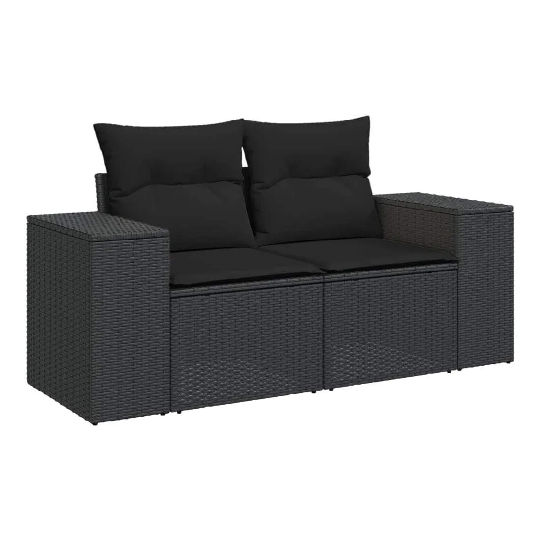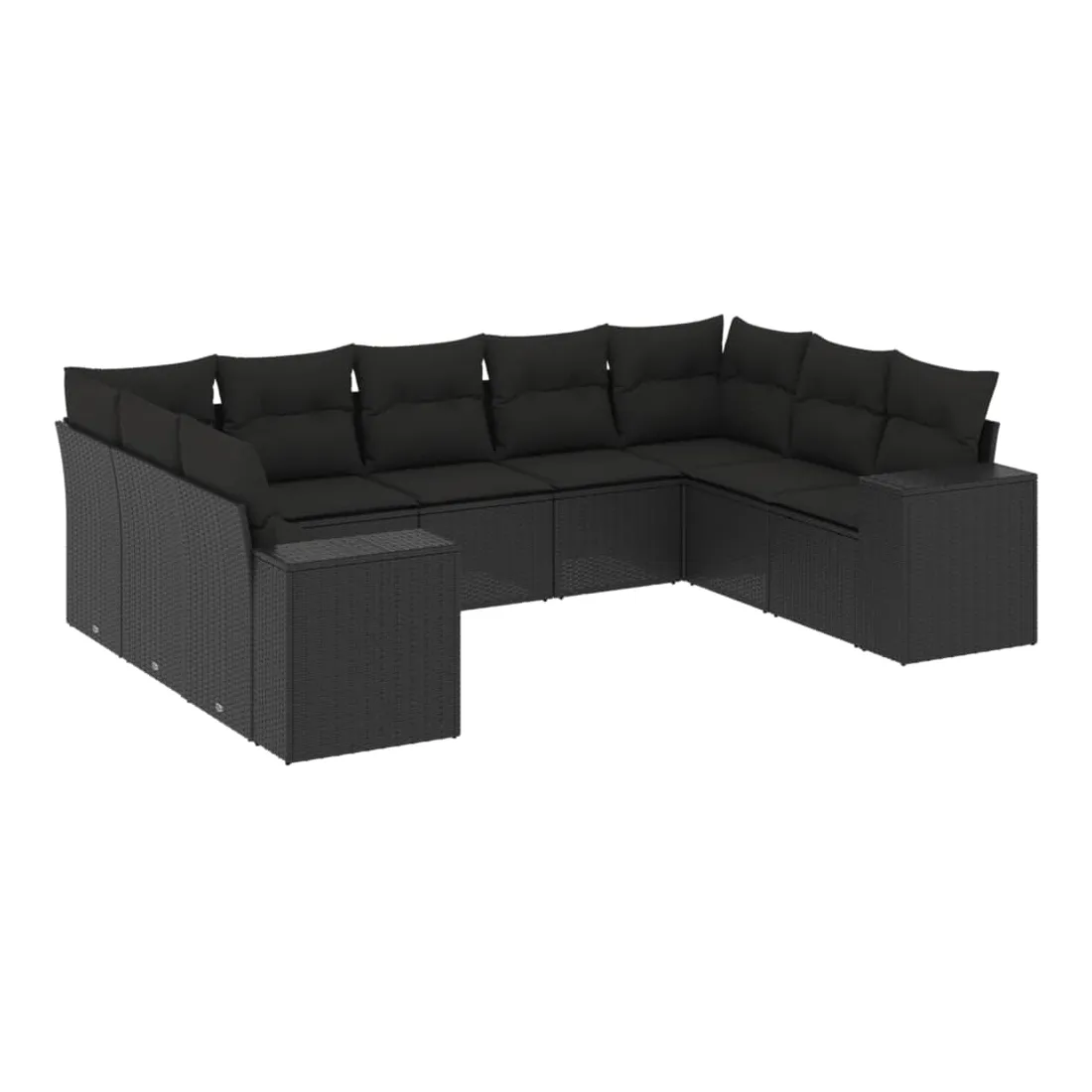 Salon de jardin 9 pcs avec coussins noir résine tressée