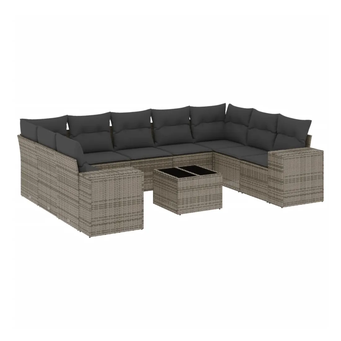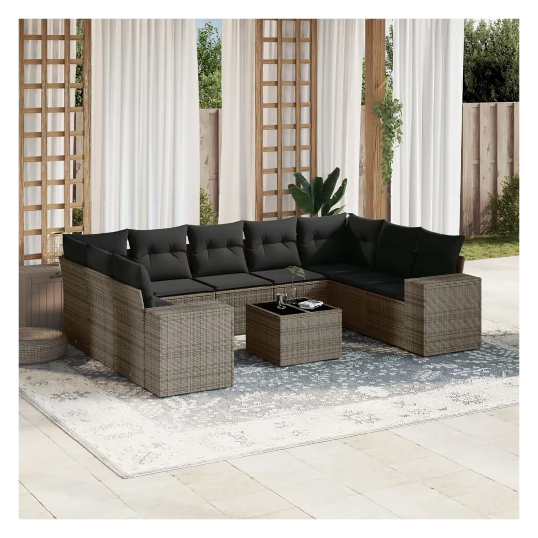 Cet ensemble de canapés de jardin est le complément parfait de votre arrière-cour, terrasse ou patio, offrant un espace confortable et accueillant pour discuter avec la famille et les amis ou simplement se détendre et profiter de l'extérieur. Matériau durable : la résine tressée, également connue sous le nom de poly rotin, est un matériau synthétique solide et nécessitant peu d'entretien qui ressemble au rotin naturel. Il est léger, facile à nettoyer et couramment utilisé pour les meubles d'extérieur en raison de sa durabilité et de ses propriétés de résistance aux intempéries.Expérience d'assise confortable : ce mobilier d'extérieur, doté de coussins épais, offre une expérience d'assise confortable.Dessus en verre : le dessus de la table d'extérieur est fabriqué en verre trempé solide et durable, ce qui le rend facile à nettoyer avec un chiffon humide et ajoute une touche d'élégance à votre espace extérieur.Housse amovible et lavable : ces coussins de siège sont dotés de housses amovibles pour un lavage et un entretien faciles.Conception modulaire : cet ensemble de meubles d'extérieur a une conception modulaire, ce qui le rend complètement flexible et facile à déplacer, afin que vous puissiez créer un agencement de meubles d'extérieur personnalisé. Bon à savoir :Pour que vos meubles d'extérieur restent beaux, nous vous recommandons de les protéger avec une housse imperméable.