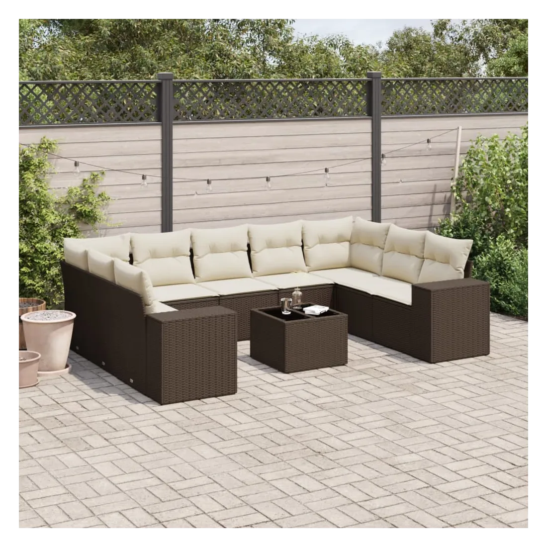 Cet ensemble de canapés de jardin est le complément parfait de votre arrière-cour, terrasse ou patio, offrant un espace confortable et accueillant pour discuter avec la famille et les amis ou simplement se détendre et profiter de l'extérieur. Matériau durable : la résine tressée, également connue sous le nom de poly rotin, est un matériau synthétique solide et nécessitant peu d'entretien qui ressemble au rotin naturel. Il est léger, facile à nettoyer et couramment utilisé pour les meubles d'extérieur en raison de sa durabilité et de ses propriétés de résistance aux intempéries.Expérience d'assise confortable : ce mobilier d'extérieur, doté de coussins épais, offre une expérience d'assise confortable.Dessus en verre : le dessus de la table d'extérieur est fabriqué en verre trempé solide et durable, ce qui le rend facile à nettoyer avec un chiffon humide et ajoute une touche d'élégance à votre espace extérieur.Housse amovible et lavable : ces coussins de siège sont dotés de housses amovibles pour un lavage et un entretien faciles.Conception modulaire : cet ensemble de meubles d'extérieur a une conception modulaire, ce qui le rend complètement flexible et facile à déplacer, afin que vous puissiez créer un agencement de meubles d'extérieur personnalisé. Bon à savoir :Pour que vos meubles d'extérieur restent beaux, nous vous recommandons de les protéger avec une housse imperméable.