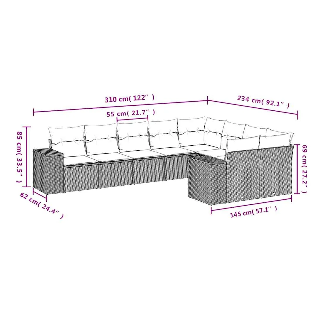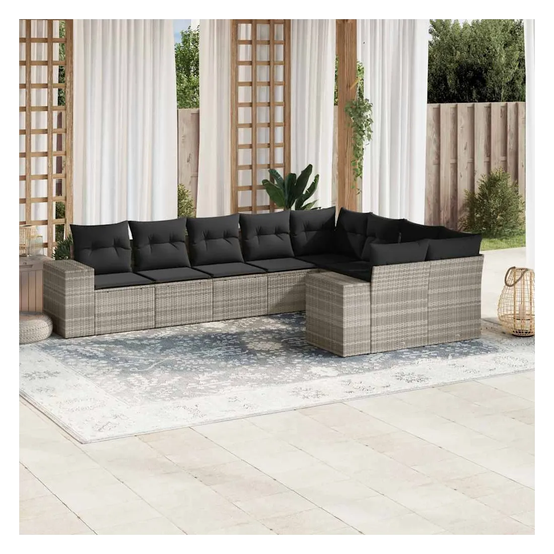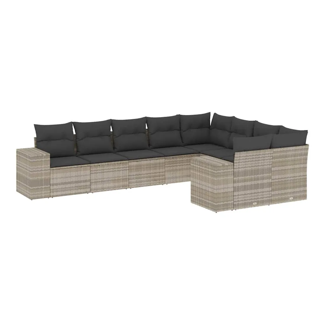 Salon de jardin 9 pcs avec coussins gris clair résine tressée