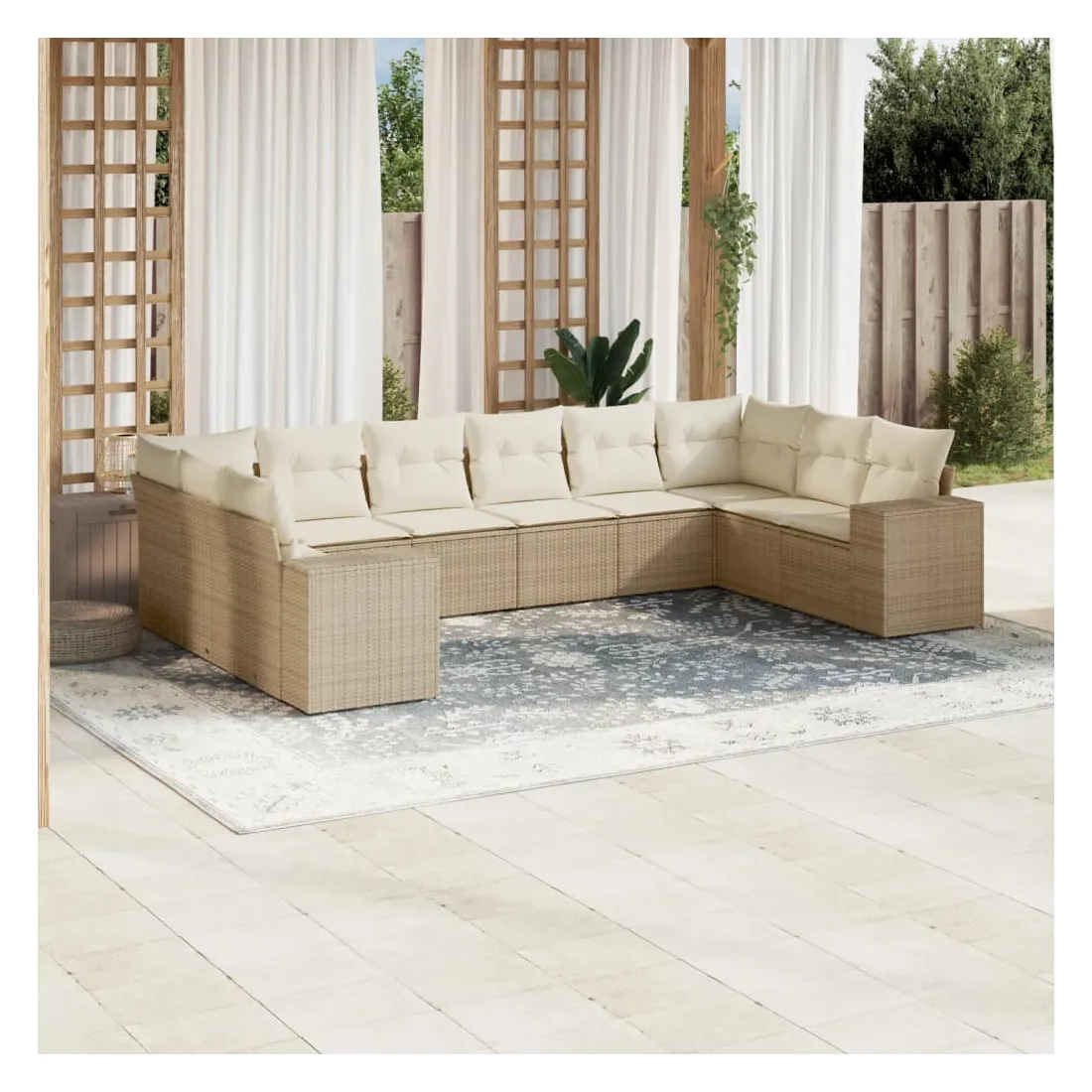 Salon de jardin avec coussins 10 pcs beige résine tressée