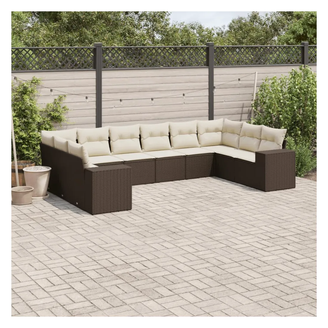 Salon de jardin 10 pcs avec coussins marron résine tressée