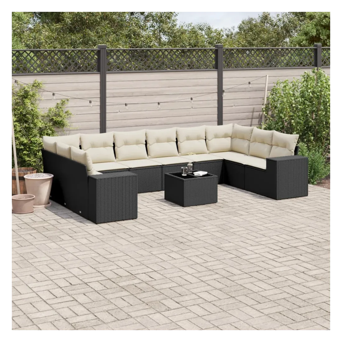 Salon de jardin 11 pcs avec coussins noir résine tressée