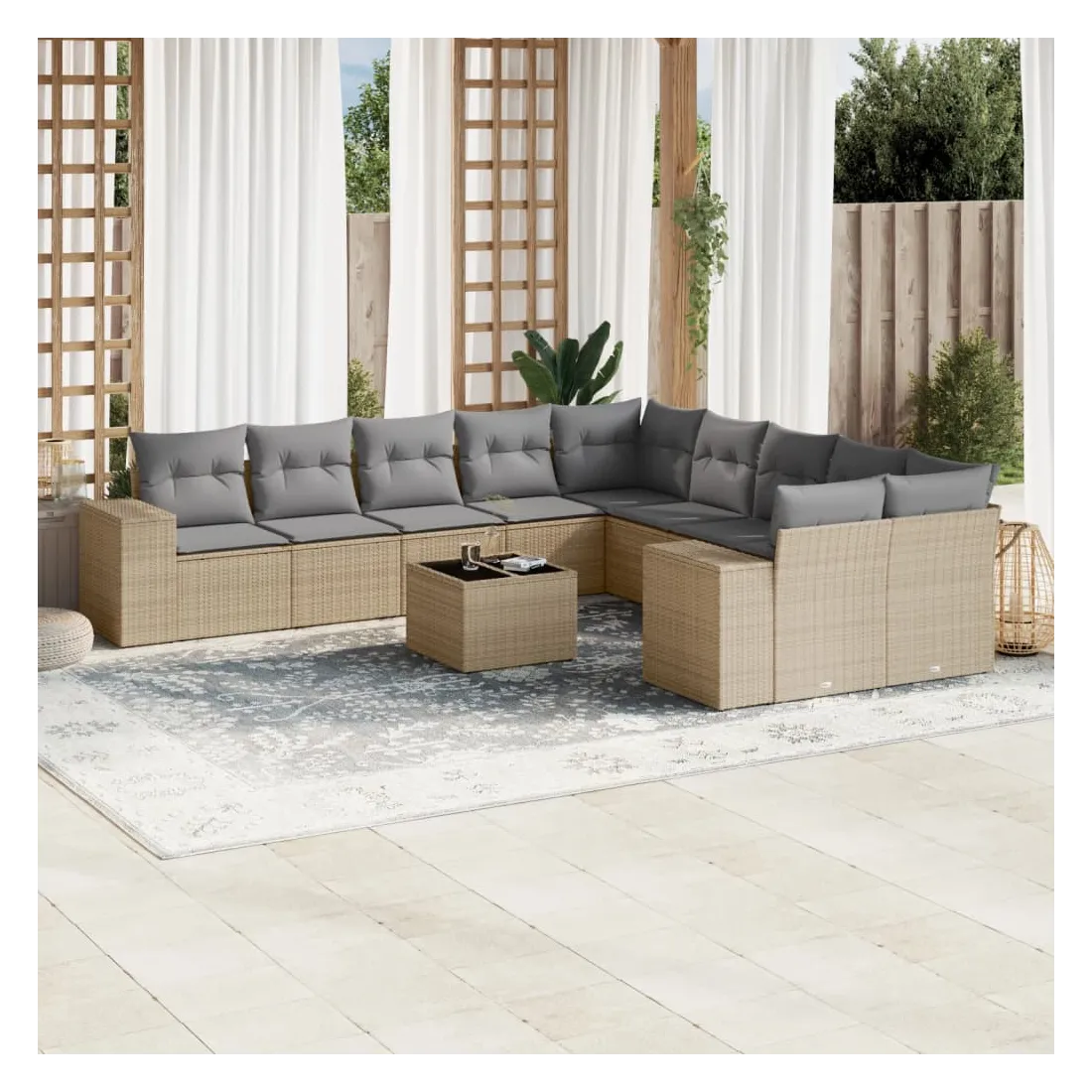 Salon de jardin 11 pcs avec coussins beige résine tressée