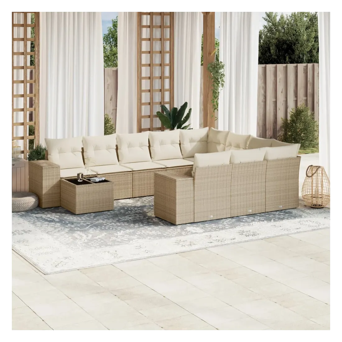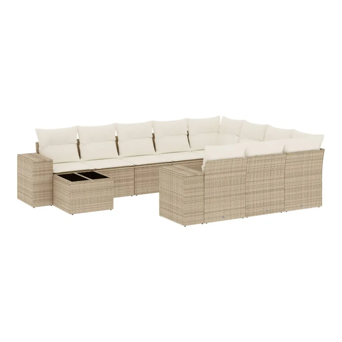Salon de jardin 11 pcs avec coussins beige résine tressée