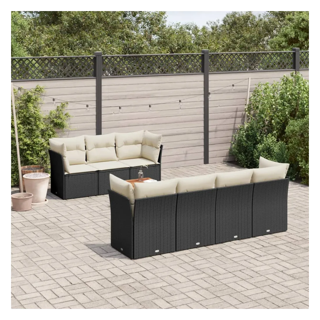 Salon de jardin 8 pcs avec coussins noir résine tressée
