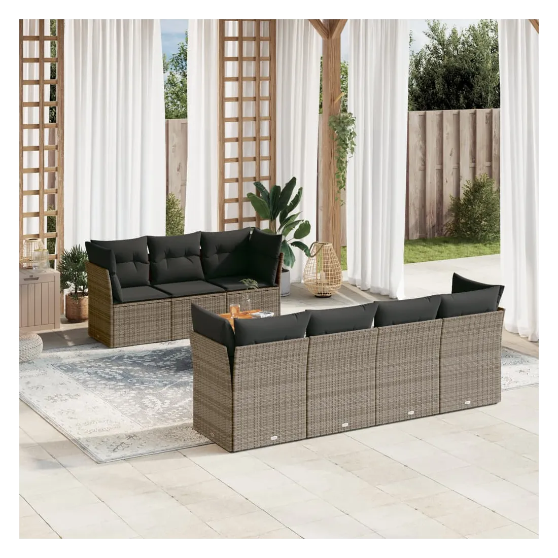 Salon de jardin 8 pcs avec coussins gris résine tressée