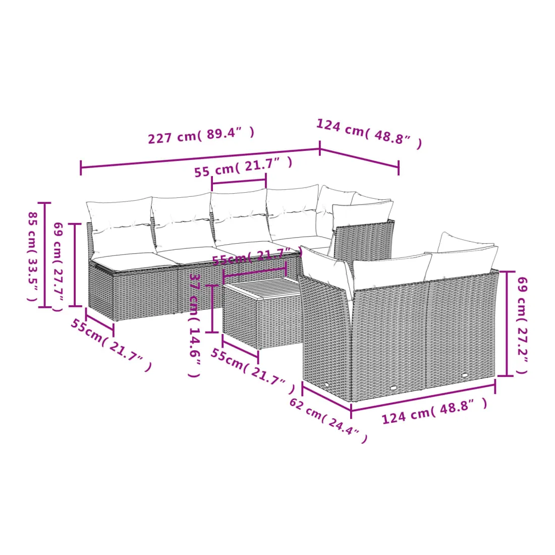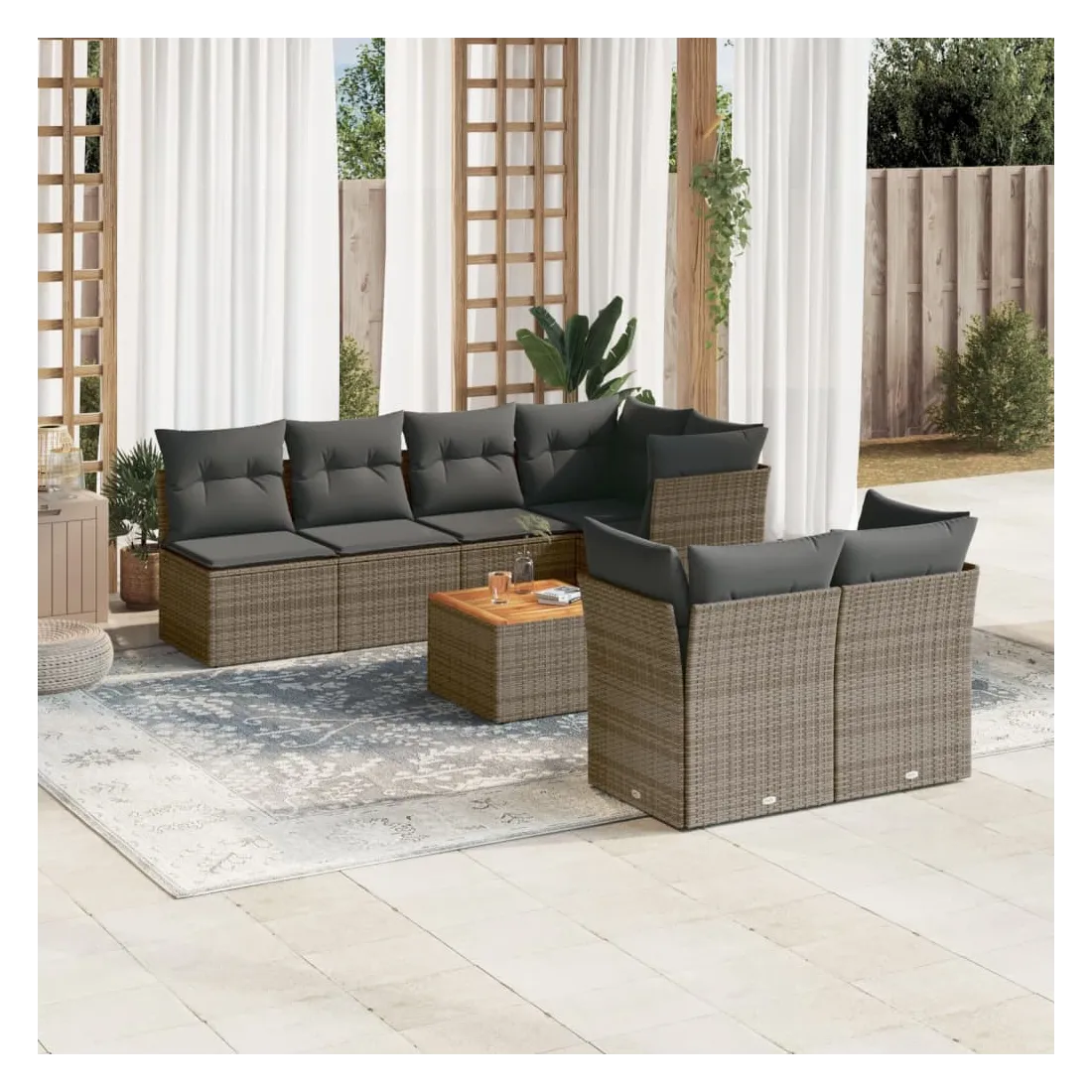 Salon de jardin 8 pcs avec coussins gris résine tressée