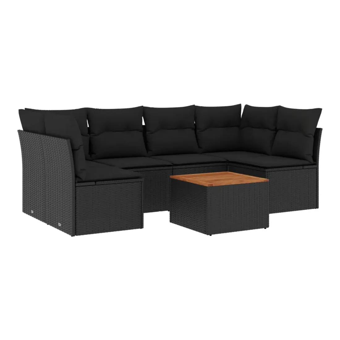 Salon de jardin 7 pcs avec coussins noir résine tressée