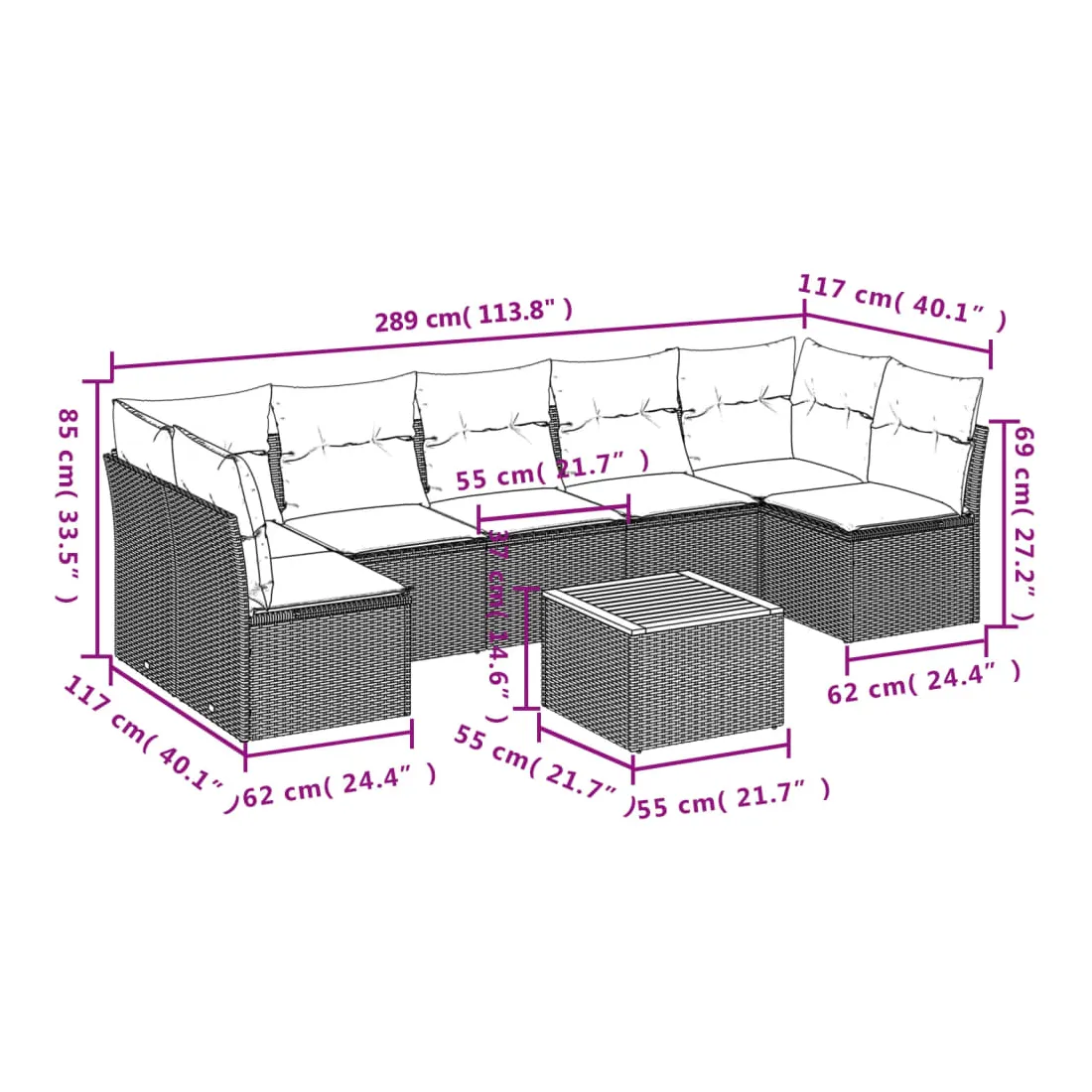 Salon de jardin 8 pcs avec coussins noir résine tressée