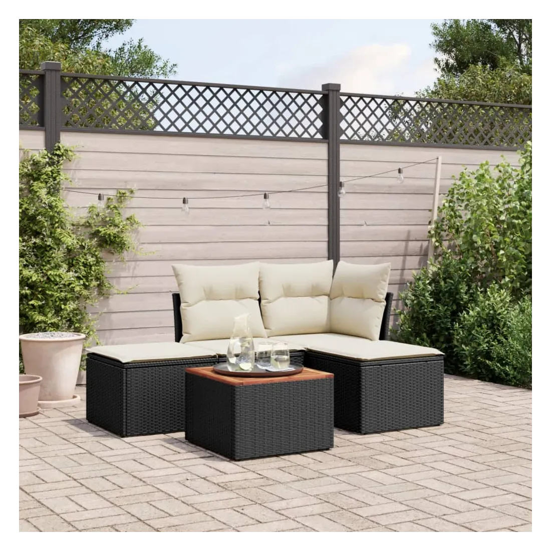 Cet ensemble de canapés de jardin est le complément parfait de votre arrière-cour, terrasse ou patio, offrant un espace confortable et accueillant pour discuter avec la famille et les amis ou simplement se détendre et profiter de l'extérieur. Matériau durable : la résine tressée, également connue sous le nom de poly rotin, est un matériau synthétique solide et nécessitant peu d'entretien qui ressemble au rotin naturel. Il est léger, facile à nettoyer et couramment utilisé pour les meubles d'extérieur en raison de sa durabilité et de ses propriétés de résistance aux intempéries.Expérience d'assise confortable : ce mobilier d'extérieur, doté de coussins épais, offre une expérience d'assise confortable.Dessus stable et facile à nettoyer : cette table de jardin a un dessus en bois d'acacia robuste, durable et facile à nettoyer avec un chiffon humide.Housse amovible et lavable : ces coussins de siège sont dotés de housses amovibles pour un lavage et un entretien faciles.Conception modulaire : cet ensemble de meubles d'extérieur a une conception modulaire, ce qui le rend complètement flexible et facile à déplacer, afin que vous puissiez créer un agencement de meubles d'extérieur personnalisé. Bon à savoir :Pour que vos meubles d'extérieur restent beaux, nous vous recommandons de les protéger avec une housse imperméable.