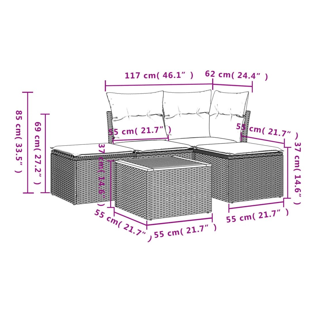 - Dimensions : 55 x 55 x 37 cm (L x l x H)