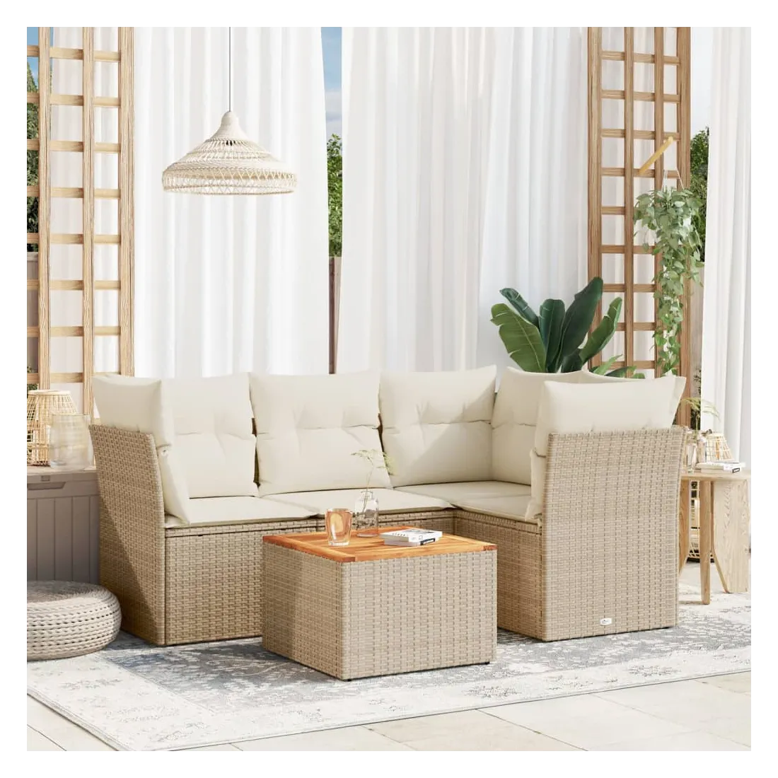 Cet ensemble de canapés de jardin est le complément parfait de votre arrière-cour, terrasse ou patio, offrant un espace confortable et accueillant pour discuter avec la famille et les amis ou simplement se détendre et profiter de l'extérieur. Matériau durable : la résine tressée, également connue sous le nom de poly rotin, est un matériau synthétique solide et nécessitant peu d'entretien qui ressemble au rotin naturel. Il est léger, facile à nettoyer et couramment utilisé pour les meubles d'extérieur en raison de sa durabilité et de ses propriétés de résistance aux intempéries.Expérience d'assise confortable : ce mobilier d'extérieur, doté de coussins épais, offre une expérience d'assise confortable.Dessus stable et facile à nettoyer : cette table de jardin a un dessus en bois d'acacia robuste, durable et facile à nettoyer avec un chiffon humide.Housse amovible et lavable : ces coussins de siège sont dotés de housses amovibles pour un lavage et un entretien faciles.Conception modulaire : cet ensemble de meubles d'extérieur a une conception modulaire, ce qui le rend complètement flexible et facile à déplacer, afin que vous puissiez créer un agencement de meubles d'extérieur personnalisé. Bon à savoir :Pour que vos meubles d'extérieur restent beaux, nous vous recommandons de les protéger avec une housse imperméable.