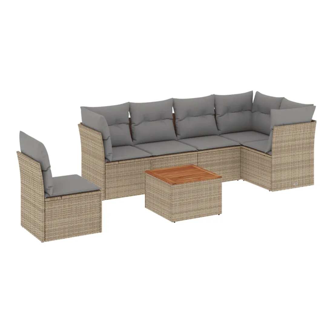 Salon de jardin avec coussins 7 pcs beige résine tressée