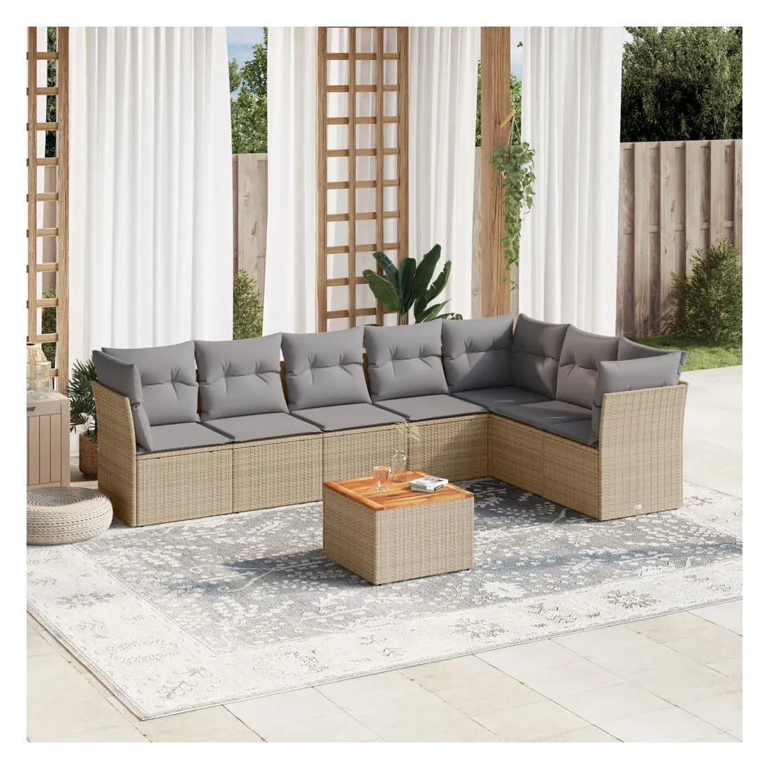 Cet ensemble de canapés de jardin est le complément parfait de votre arrière-cour, terrasse ou patio, offrant un espace confortable et accueillant pour discuter avec la famille et les amis ou simplement se détendre et profiter de l'extérieur. Matériau durable : la résine tressée, également connue sous le nom de poly rotin, est un matériau synthétique solide et nécessitant peu d'entretien qui ressemble au rotin naturel. Il est léger, facile à nettoyer et couramment utilisé pour les meubles d'extérieur en raison de sa durabilité et de ses propriétés de résistance aux intempéries.Expérience d'assise confortable : ce mobilier d'extérieur, doté de coussins épais, offre une expérience d'assise confortable.Dessus stable et facile à nettoyer : cette table de jardin a un dessus en bois d'acacia robuste, durable et facile à nettoyer avec un chiffon humide.Housse amovible et lavable : ces coussins de siège sont dotés de housses amovibles pour un lavage et un entretien faciles.Conception modulaire : cet ensemble de meubles d'extérieur a une conception modulaire, ce qui le rend complètement flexible et facile à déplacer, afin que vous puissiez créer un agencement de meubles d'extérieur personnalisé. Bon à savoir :Pour que vos meubles d'extérieur restent beaux, nous vous recommandons de les protéger avec une housse imperméable.