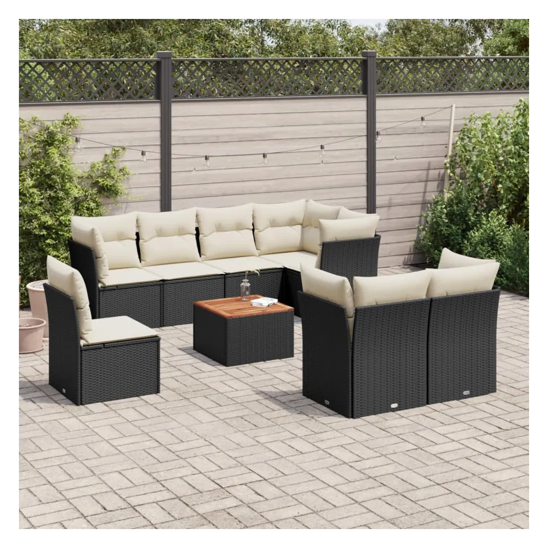 Cet ensemble de canapés de jardin est le complément parfait de votre arrière-cour, terrasse ou patio, offrant un espace confortable et accueillant pour discuter avec la famille et les amis ou simplement se détendre et profiter de l'extérieur. Matériau durable : la résine tressée, également connue sous le nom de poly rotin, est un matériau synthétique solide et nécessitant peu d'entretien qui ressemble au rotin naturel. Il est léger, facile à nettoyer et couramment utilisé pour les meubles d'extérieur en raison de sa durabilité et de ses propriétés de résistance aux intempéries.Expérience d'assise confortable : ce mobilier d'extérieur, doté de coussins épais, offre une expérience d'assise confortable.Dessus stable et facile à nettoyer : cette table de jardin a un dessus en bois d'acacia robuste, durable et facile à nettoyer avec un chiffon humide.Housse amovible et lavable : ces coussins de siège sont dotés de housses amovibles pour un lavage et un entretien faciles.Conception modulaire : cet ensemble de meubles d'extérieur a une conception modulaire, ce qui le rend complètement flexible et facile à déplacer, afin que vous puissiez créer un agencement de meubles d'extérieur personnalisé. Bon à savoir :Pour que vos meubles d'extérieur restent beaux, nous vous recommandons de les protéger avec une housse imperméable.