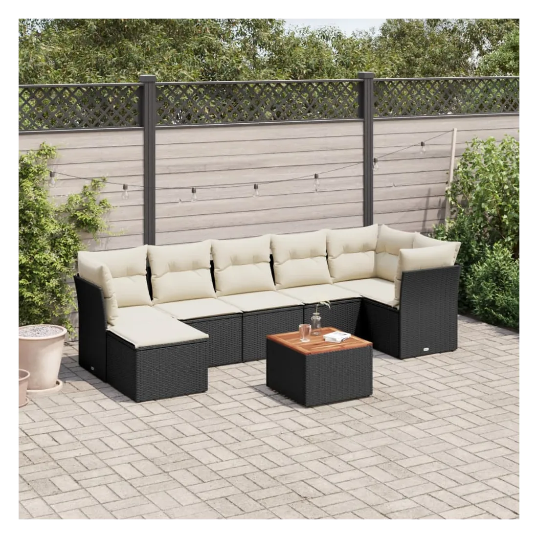 Cet ensemble de canapés de jardin est le complément parfait de votre arrière-cour, terrasse ou patio, offrant un espace confortable et accueillant pour discuter avec la famille et les amis ou simplement se détendre et profiter de l'extérieur. Matériau durable : la résine tressée, également connue sous le nom de poly rotin, est un matériau synthétique solide et nécessitant peu d'entretien qui ressemble au rotin naturel. Il est léger, facile à nettoyer et couramment utilisé pour les meubles d'extérieur en raison de sa durabilité et de ses propriétés de résistance aux intempéries.Expérience d'assise confortable : ce mobilier d'extérieur, doté de coussins épais, offre une expérience d'assise confortable.Dessus stable et facile à nettoyer : cette table de jardin a un dessus en bois d'acacia robuste, durable et facile à nettoyer avec un chiffon humide.Housse amovible et lavable : ces coussins de siège sont dotés de housses amovibles pour un lavage et un entretien faciles.Conception modulaire : cet ensemble de meubles d'extérieur a une conception modulaire, ce qui le rend complètement flexible et facile à déplacer, afin que vous puissiez créer un agencement de meubles d'extérieur personnalisé. Bon à savoir :Pour que vos meubles d'extérieur restent beaux, nous vous recommandons de les protéger avec une housse imperméable.