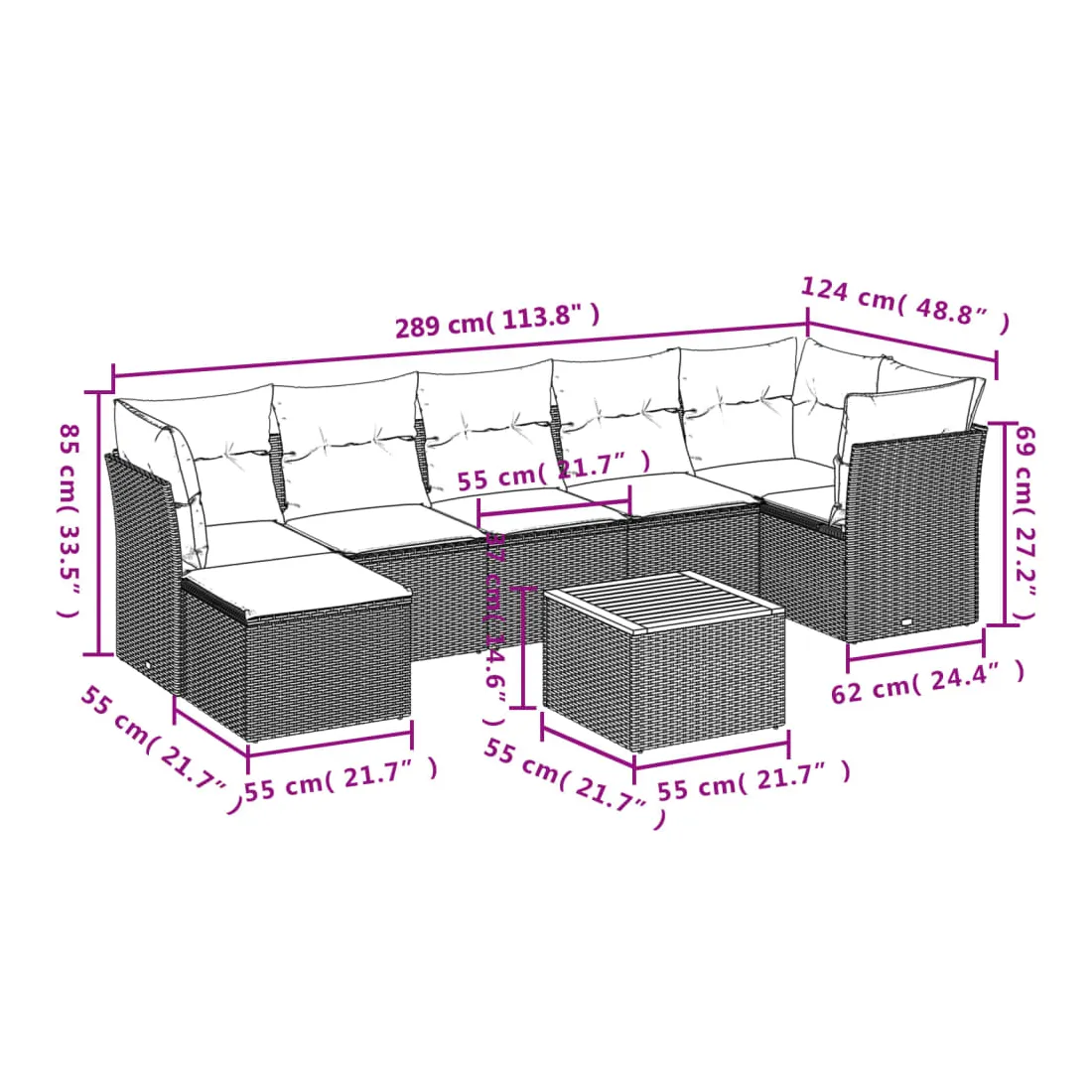 - 7 x coussin de siège avec housse amovible et lavable