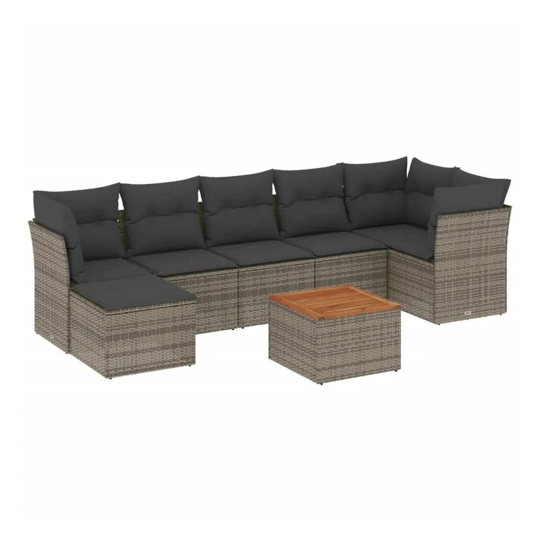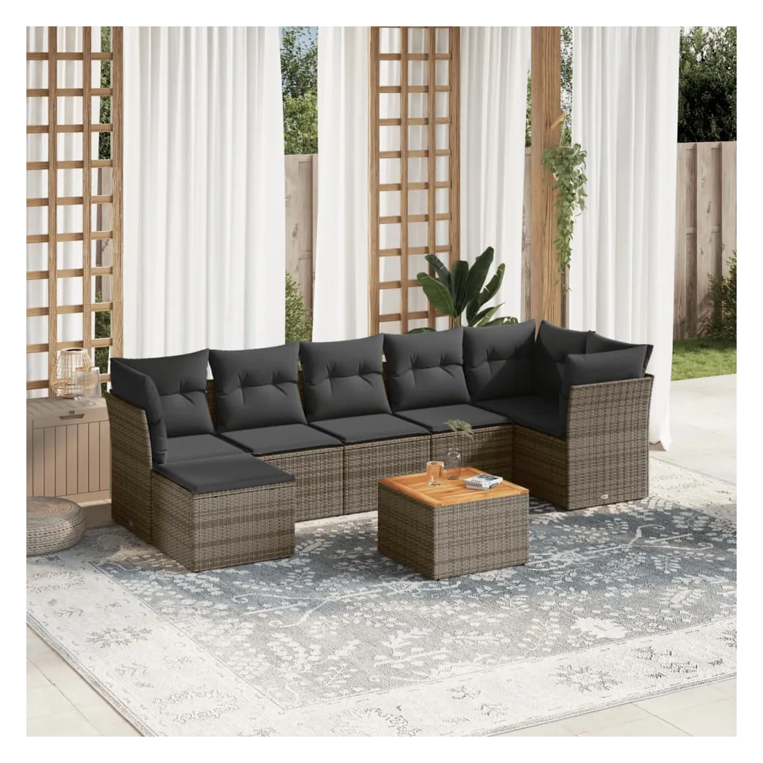 Cet ensemble de canapés de jardin est le complément parfait de votre arrière-cour, terrasse ou patio, offrant un espace confortable et accueillant pour discuter avec la famille et les amis ou simplement se détendre et profiter de l'extérieur. Matériau durable : la résine tressée, également connue sous le nom de poly rotin, est un matériau synthétique solide et nécessitant peu d'entretien qui ressemble au rotin naturel. Il est léger, facile à nettoyer et couramment utilisé pour les meubles d'extérieur en raison de sa durabilité et de ses propriétés de résistance aux intempéries.Expérience d'assise confortable : ce mobilier d'extérieur, doté de coussins épais, offre une expérience d'assise confortable.Dessus stable et facile à nettoyer : cette table de jardin a un dessus en bois d'acacia robuste, durable et facile à nettoyer avec un chiffon humide.Housse amovible et lavable : ces coussins de siège sont dotés de housses amovibles pour un lavage et un entretien faciles.Conception modulaire : cet ensemble de meubles d'extérieur a une conception modulaire, ce qui le rend complètement flexible et facile à déplacer, afin que vous puissiez créer un agencement de meubles d'extérieur personnalisé. Bon à savoir :Pour que vos meubles d'extérieur restent beaux, nous vous recommandons de les protéger avec une housse imperméable.
