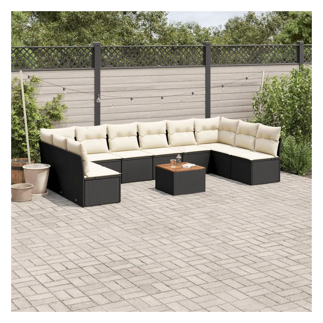 Cet ensemble de canapés de jardin est le complément parfait de votre arrière-cour, terrasse ou patio, offrant un espace confortable et accueillant pour discuter avec la famille et les amis ou simplement se détendre et profiter de l'extérieur. Matériau durable : la résine tressée, également connue sous le nom de poly rotin, est un matériau synthétique solide et nécessitant peu d'entretien qui ressemble au rotin naturel. Il est léger, facile à nettoyer et couramment utilisé pour les meubles d'extérieur en raison de sa durabilité et de ses propriétés de résistance aux intempéries.Expérience d'assise confortable : ce mobilier d'extérieur, doté de coussins épais, offre une expérience d'assise confortable.Dessus stable et facile à nettoyer : cette table de jardin a un dessus en bois d'acacia robuste, durable et facile à nettoyer avec un chiffon humide.Housse amovible et lavable : ces coussins de siège sont dotés de housses amovibles pour un lavage et un entretien faciles.Conception modulaire : cet ensemble de meubles d'extérieur a une conception modulaire, ce qui le rend complètement flexible et facile à déplacer, afin que vous puissiez créer un agencement de meubles d'extérieur personnalisé. Bon à savoir :Pour que vos meubles d'extérieur restent beaux, nous vous recommandons de les protéger avec une housse imperméable.
