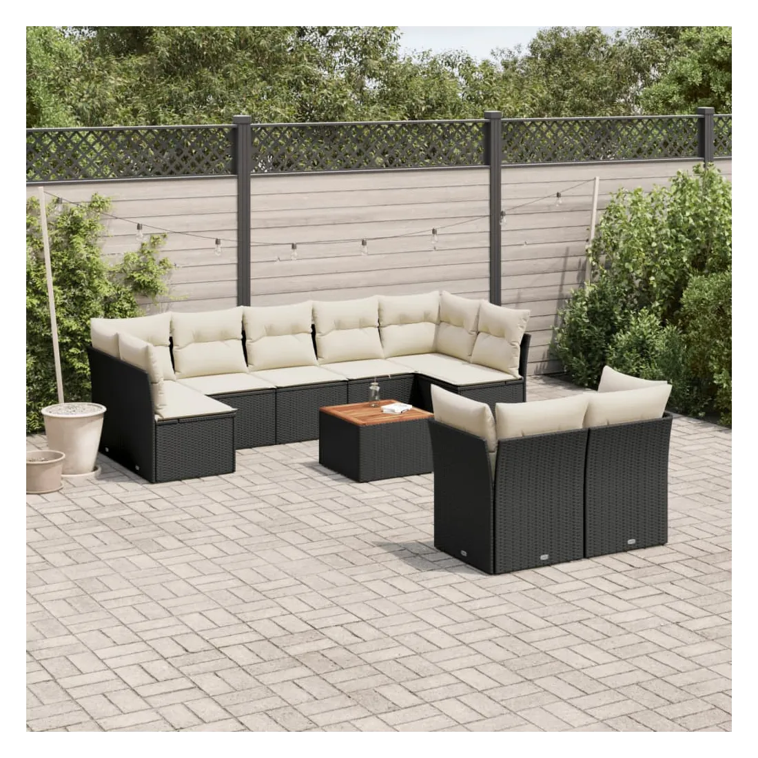 Salon de jardin 10 pcs avec coussins noir résine tressée