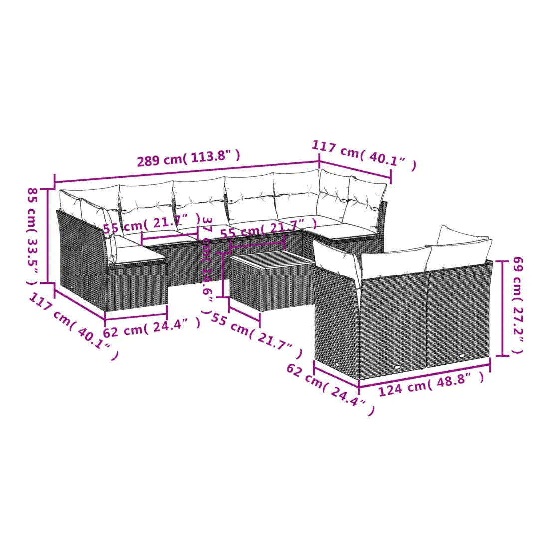• 9 x coussin d'assise avec housse amovible et lavable
