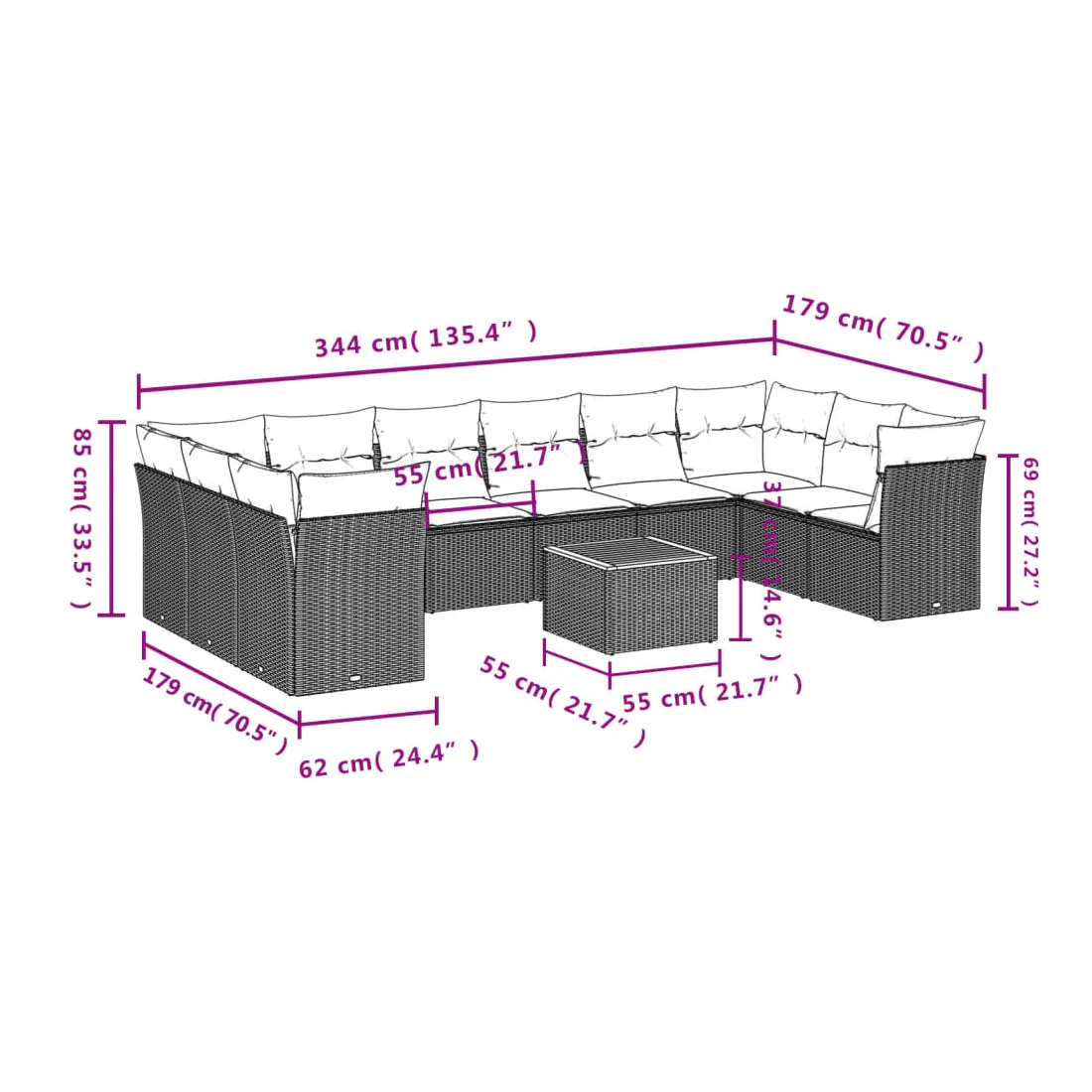Salon de jardin 11 pcs avec coussins noir résine tressée