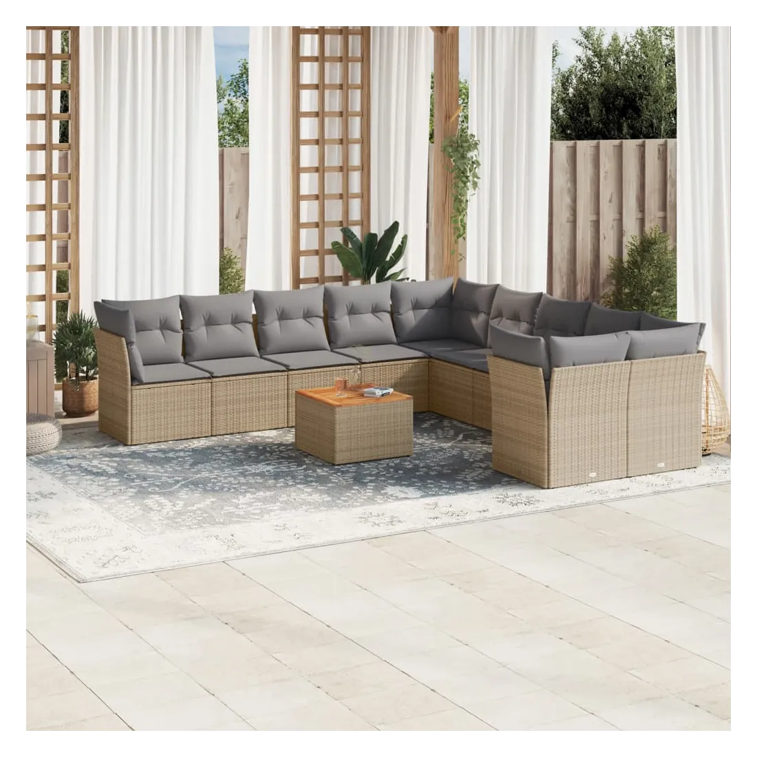 Salon de jardin 11 pcs avec coussins beige résine tressée