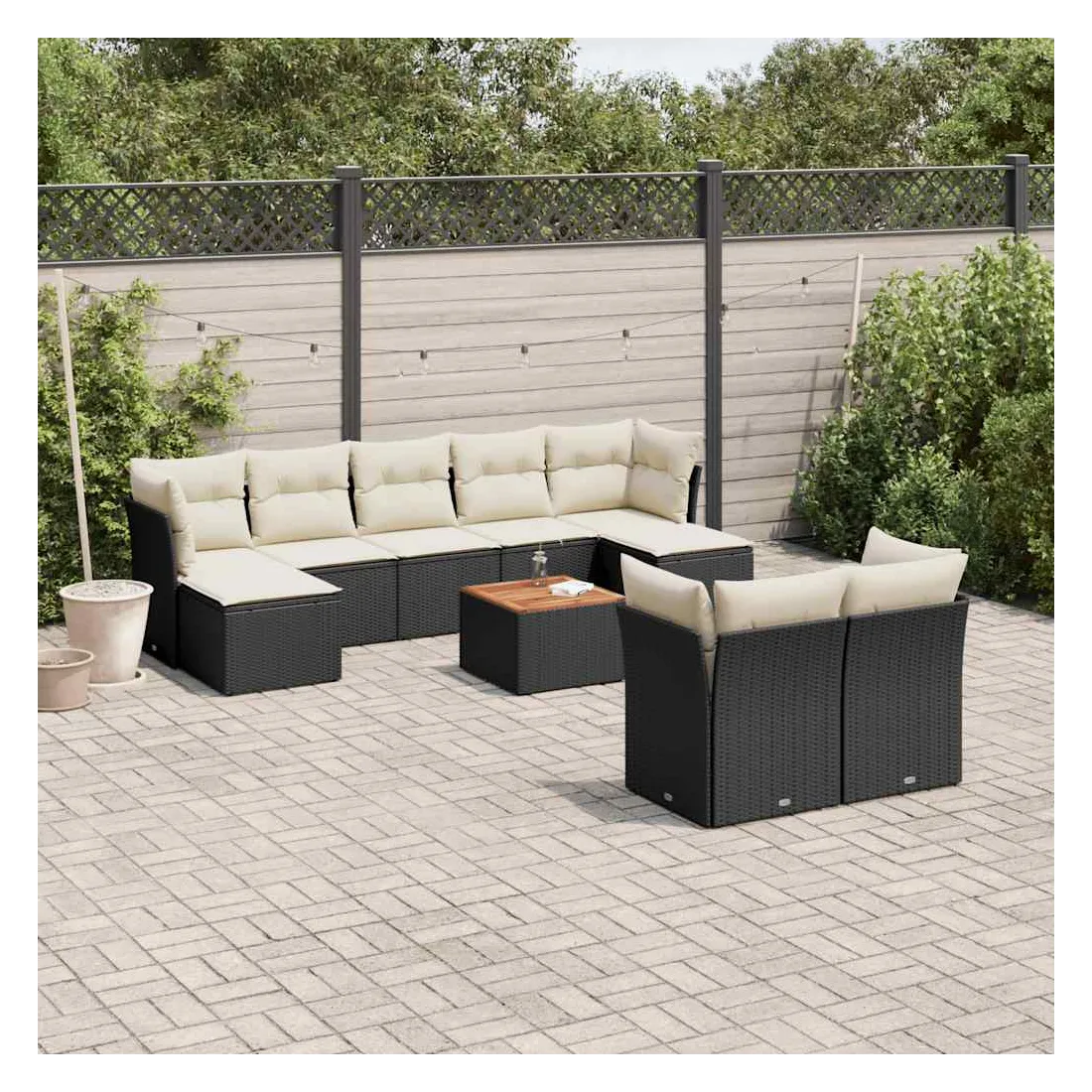 Cet ensemble de canapés de jardin est le complément parfait de votre arrière-cour, terrasse ou patio, offrant un espace confortable et accueillant pour discuter avec la famille et les amis ou simplement se détendre et profiter de l'extérieur. Matériau durable : la résine tressée, également connue sous le nom de poly rotin, est un matériau synthétique solide et nécessitant peu d'entretien qui ressemble au rotin naturel. Il est léger, facile à nettoyer et couramment utilisé pour les meubles d'extérieur en raison de sa durabilité et de ses propriétés de résistance aux intempéries.Expérience d'assise confortable : ce mobilier d'extérieur, doté de coussins épais, offre une expérience d'assise confortable.Dessus stable et facile à nettoyer : cette table de jardin a un dessus en bois d'acacia robuste, durable et facile à nettoyer avec un chiffon humide.Housse amovible et lavable : ces coussins de siège sont dotés de housses amovibles pour un lavage et un entretien faciles.Conception modulaire : cet ensemble de meubles d'extérieur a une conception modulaire, ce qui le rend complètement flexible et facile à déplacer, afin que vous puissiez créer un agencement de meubles d'extérieur personnalisé. Bon à savoir :Pour que vos meubles d'extérieur restent beaux, nous vous recommandons de les protéger avec une housse imperméable.