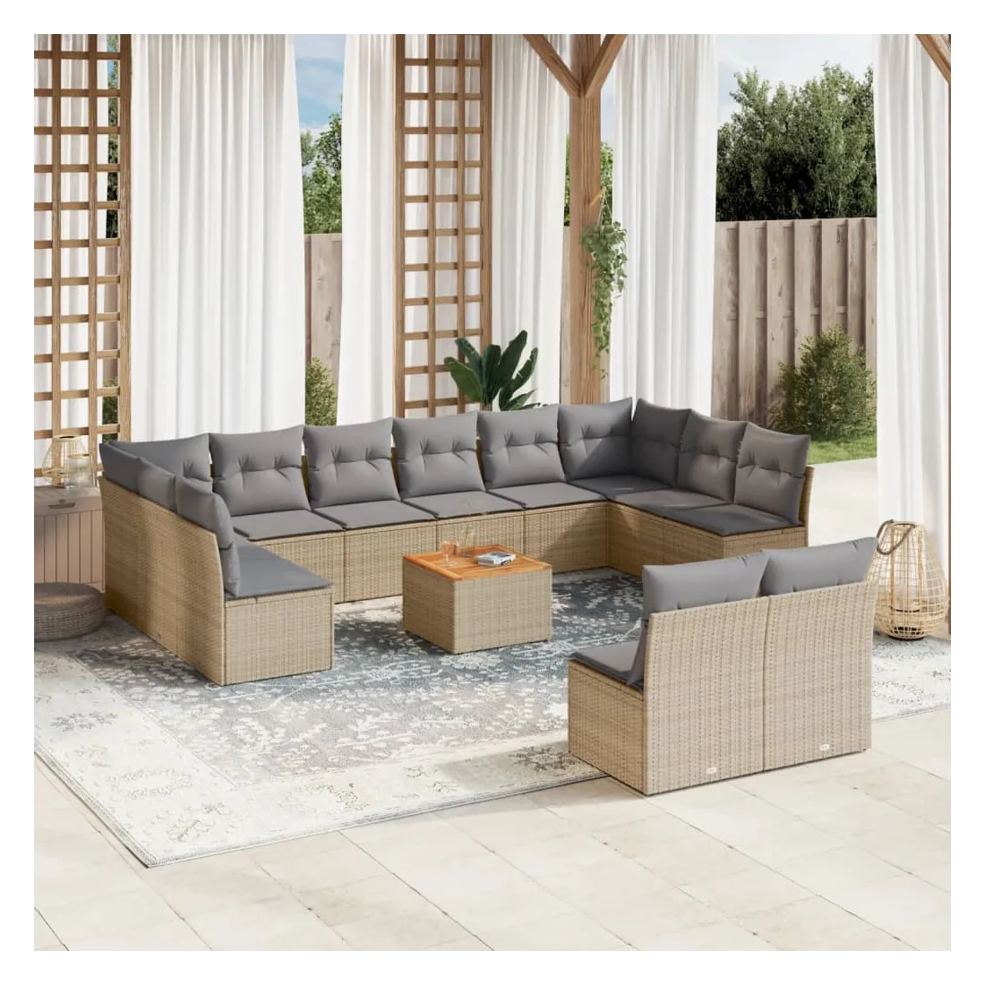 Cet ensemble de canapés de jardin est le complément parfait de votre arrière-cour, terrasse ou patio, offrant un espace confortable et accueillant pour discuter avec la famille et les amis ou simplement se détendre et profiter de l'extérieur. Matériau durable : la résine tressée, également connue sous le nom de poly rotin, est un matériau synthétique solide et nécessitant peu d'entretien qui ressemble au rotin naturel. Il est léger, facile à nettoyer et couramment utilisé pour les meubles d'extérieur en raison de sa durabilité et de ses propriétés de résistance aux intempéries.Expérience d'assise confortable : ce mobilier d'extérieur, doté de coussins épais, offre une expérience d'assise confortable.Dessus stable et facile à nettoyer : cette table de jardin a un dessus en bois d'acacia robuste, durable et facile à nettoyer avec un chiffon humide.Housse amovible et lavable : ces coussins de siège sont dotés de housses amovibles pour un lavage et un entretien faciles.Conception modulaire : cet ensemble de meubles d'extérieur a une conception modulaire, ce qui le rend complètement flexible et facile à déplacer, afin que vous puissiez créer un agencement de meubles d'extérieur personnalisé. Bon à savoir :Pour que vos meubles d'extérieur restent beaux, nous vous recommandons de les protéger avec une housse imperméable.