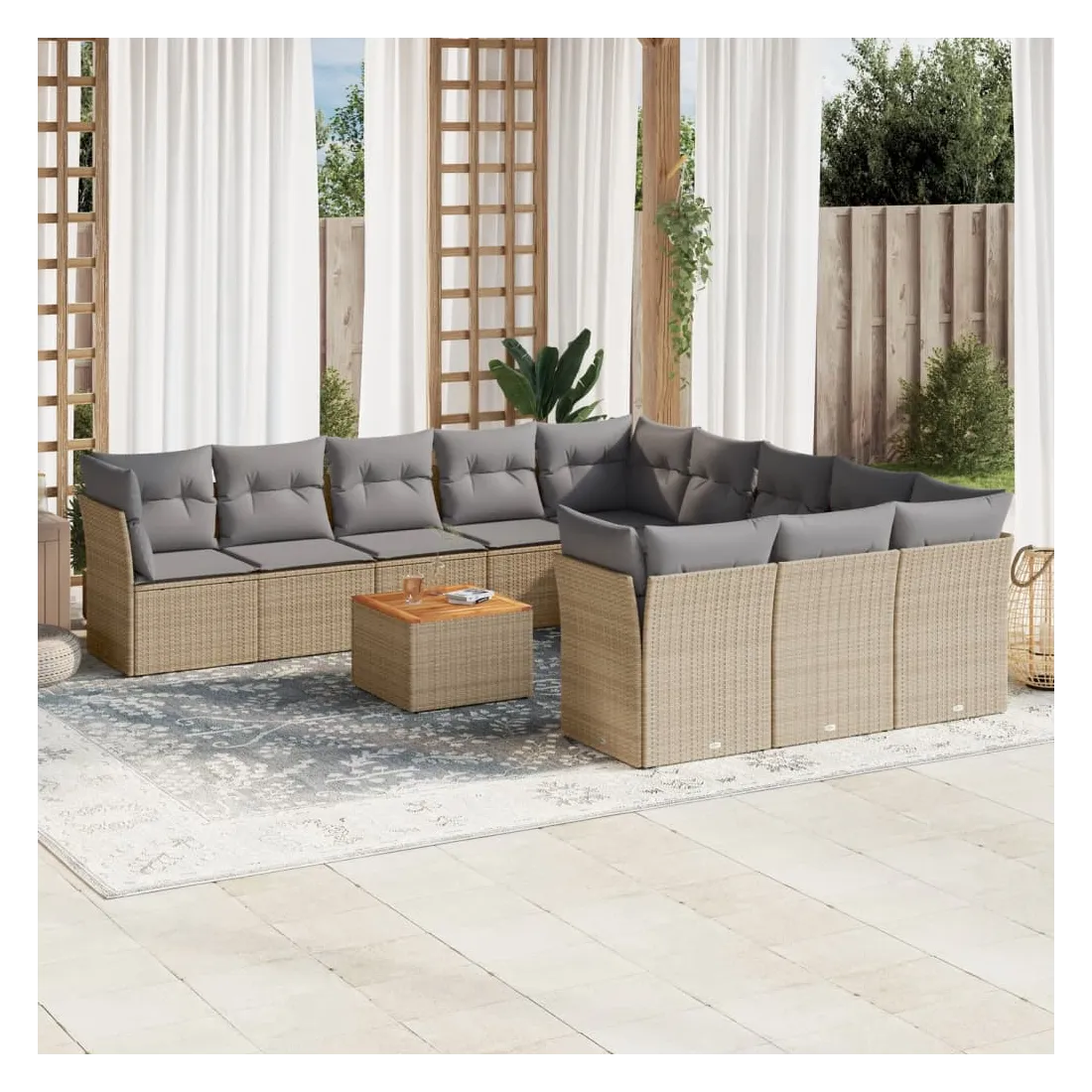 Cet ensemble de canapés de jardin est le complément parfait de votre arrière-cour, terrasse ou patio, offrant un espace confortable et accueillant pour discuter avec la famille et les amis ou simplement se détendre et profiter de l'extérieur. Matériau durable : la résine tressée, également connue sous le nom de poly rotin, est un matériau synthétique solide et nécessitant peu d'entretien qui ressemble au rotin naturel. Il est léger, facile à nettoyer et couramment utilisé pour les meubles d'extérieur en raison de sa durabilité et de ses propriétés de résistance aux intempéries.Expérience d'assise confortable : ce mobilier d'extérieur, doté de coussins épais, offre une expérience d'assise confortable.Dessus stable et facile à nettoyer : cette table de jardin a un dessus en bois d'acacia robuste, durable et facile à nettoyer avec un chiffon humide.Housse amovible et lavable : ces coussins de siège sont dotés de housses amovibles pour un lavage et un entretien faciles.Conception modulaire : cet ensemble de meubles d'extérieur a une conception modulaire, ce qui le rend complètement flexible et facile à déplacer, afin que vous puissiez créer un agencement de meubles d'extérieur personnalisé. Bon à savoir :Pour que vos meubles d'extérieur restent beaux, nous vous recommandons de les protéger avec une housse imperméable.