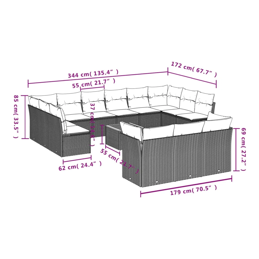 - Dimensions du coussin de dossier : 55 x 45 x 13 cm (L x l x é)