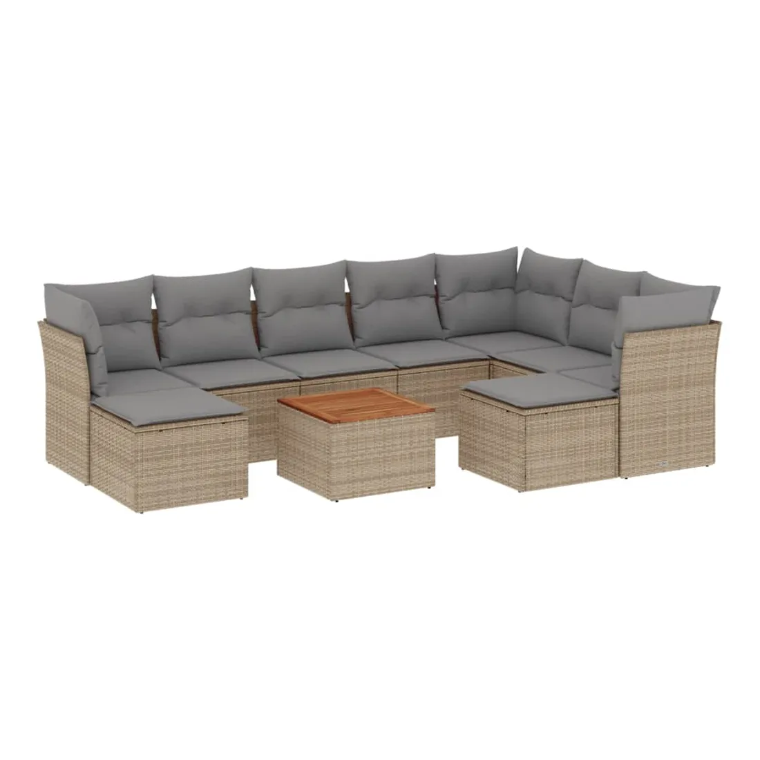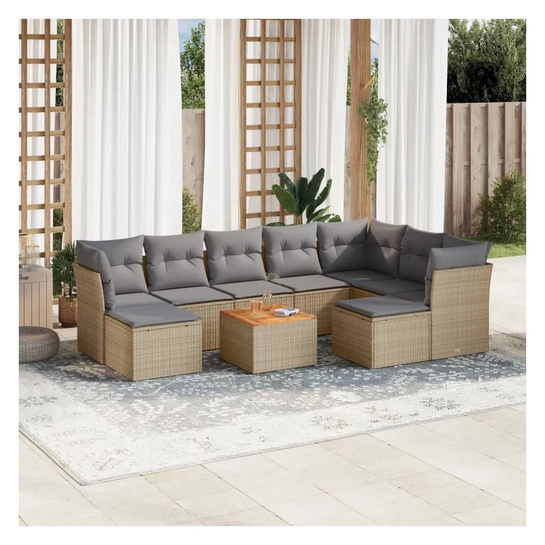 Cet ensemble de canapés de jardin est le complément parfait de votre arrière-cour, terrasse ou patio, offrant un espace confortable et accueillant pour discuter avec la famille et les amis ou simplement se détendre et profiter de l'extérieur. Matériau durable : la résine tressée, également connue sous le nom de poly rotin, est un matériau synthétique solide et nécessitant peu d'entretien qui ressemble au rotin naturel. Il est léger, facile à nettoyer et couramment utilisé pour les meubles d'extérieur en raison de sa durabilité et de ses propriétés de résistance aux intempéries.Expérience d'assise confortable : ce mobilier d'extérieur, doté de coussins épais, offre une expérience d'assise confortable.Dessus stable et facile à nettoyer : cette table de jardin a un dessus en bois d'acacia robuste, durable et facile à nettoyer avec un chiffon humide.Housse amovible et lavable : ces coussins de siège sont dotés de housses amovibles pour un lavage et un entretien faciles.Conception modulaire : cet ensemble de meubles d'extérieur a une conception modulaire, ce qui le rend complètement flexible et facile à déplacer, afin que vous puissiez créer un agencement de meubles d'extérieur personnalisé. Bon à savoir :Pour que vos meubles d'extérieur restent beaux, nous vous recommandons de les protéger avec une housse imperméable.