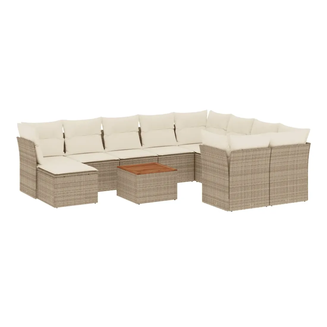 Cet ensemble de canapés de jardin est le complément parfait de votre arrière-cour, terrasse ou patio, offrant un espace confortable et accueillant pour discuter avec la famille et les amis ou simplement se détendre et profiter de l'extérieur. Matériau durable : la résine tressée, également connue sous le nom de poly rotin, est un matériau synthétique solide et nécessitant peu d'entretien qui ressemble au rotin naturel. Il est léger, facile à nettoyer et couramment utilisé pour les meubles d'extérieur en raison de sa durabilité et de ses propriétés de résistance aux intempéries.Expérience d'assise confortable : ce mobilier d'extérieur, doté de coussins épais, offre une expérience d'assise confortable.Dessus stable et facile à nettoyer : cette table de jardin a un dessus en bois d'acacia robuste, durable et facile à nettoyer avec un chiffon humide.Housse amovible et lavable : ces coussins de siège sont dotés de housses amovibles pour un lavage et un entretien faciles.Conception modulaire : cet ensemble de meubles d'extérieur a une conception modulaire, ce qui le rend complètement flexible et facile à déplacer, afin que vous puissiez créer un agencement de meubles d'extérieur personnalisé. Bon à savoir :Pour que vos meubles d'extérieur restent beaux, nous vous recommandons de les protéger avec une housse imperméable.