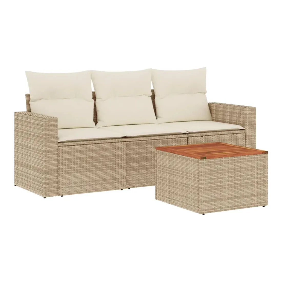 Cet ensemble de canapés de jardin est le complément parfait de votre arrière-cour, terrasse ou patio, offrant un espace confortable et accueillant pour discuter avec la famille et les amis ou simplement se détendre et profiter de l'extérieur. Matériau durable : la résine tressée, également connue sous le nom de poly rotin, est un matériau synthétique solide et nécessitant peu d'entretien qui ressemble au rotin naturel. Il est léger, facile à nettoyer et couramment utilisé pour les meubles d'extérieur en raison de sa durabilité et de ses propriétés de résistance aux intempéries.Expérience d'assise confortable : ce mobilier d'extérieur, doté de coussins épais, offre une expérience d'assise confortable.Dessus stable et facile à nettoyer : cette table de jardin a un dessus en bois d'acacia robuste, durable et facile à nettoyer avec un chiffon humide.Housse amovible et lavable : ces coussins de siège sont dotés de housses amovibles pour un lavage et un entretien faciles.Conception modulaire : cet ensemble de meubles d'extérieur a une conception modulaire, ce qui le rend complètement flexible et facile à déplacer, afin que vous puissiez créer un agencement de meubles d'extérieur personnalisé. Bon à savoir :Pour que vos meubles d'extérieur restent beaux, nous vous recommandons de les protéger avec une housse imperméable.