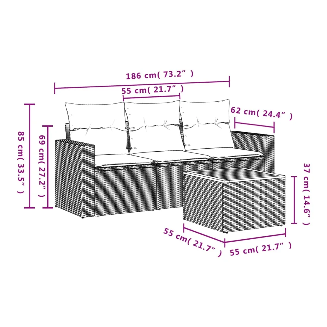 - Dimensions : 55 x 55 x 37 cm (L x l x H)
