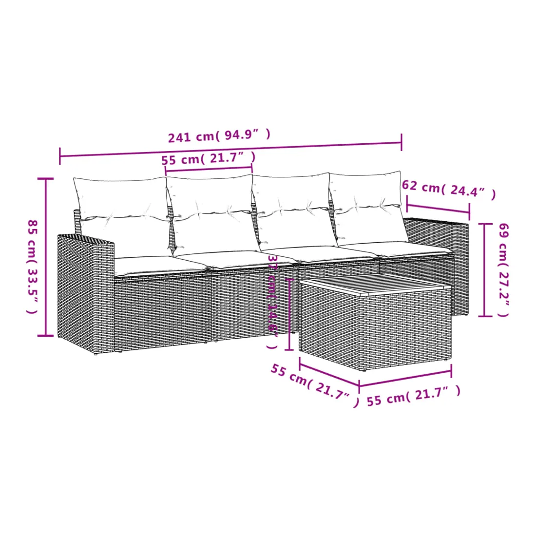 Cet ensemble de canapés de jardin est le complément parfait de votre arrière-cour, terrasse ou patio, offrant un espace confortable et accueillant pour discuter avec la famille et les amis ou simplement se détendre et profiter de l'extérieur. Matériau durable : la résine tressée, également connue sous le nom de poly rotin, est un matériau synthétique solide et nécessitant peu d'entretien qui ressemble au rotin naturel. Il est léger, facile à nettoyer et couramment utilisé pour les meubles d'extérieur en raison de sa durabilité et de ses propriétés de résistance aux intempéries.Expérience d'assise confortable : ce mobilier d'extérieur, doté de coussins épais, offre une expérience d'assise confortable.Dessus stable et facile à nettoyer : cette table de jardin a un dessus en bois d'acacia robuste, durable et facile à nettoyer avec un chiffon humide.Housse amovible et lavable : ces coussins de siège sont dotés de housses amovibles pour un lavage et un entretien faciles.Conception modulaire : cet ensemble de meubles d'extérieur a une conception modulaire, ce qui le rend complètement flexible et facile à déplacer, afin que vous puissiez créer un agencement de meubles d'extérieur personnalisé. Bon à savoir :Pour que vos meubles d'extérieur restent beaux, nous vous recommandons de les protéger avec une housse imperméable.