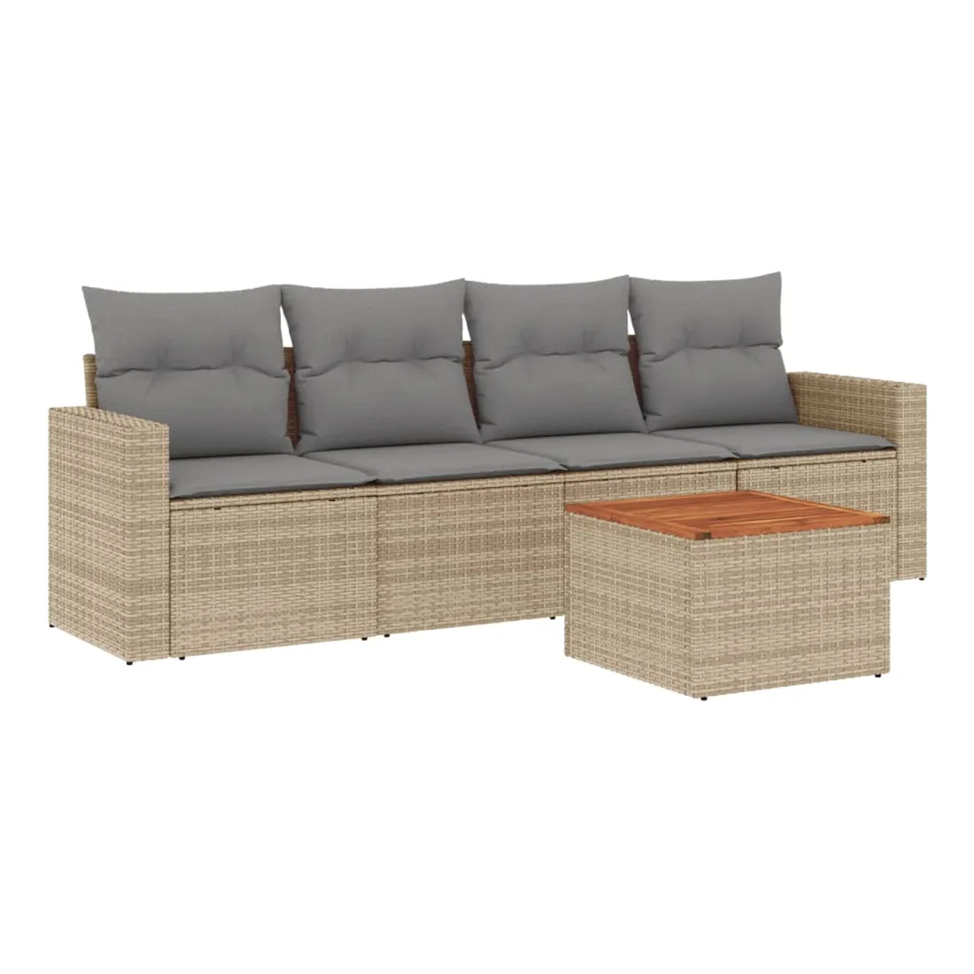 Cet ensemble de canapés de jardin est le complément parfait de votre arrière-cour, terrasse ou patio, offrant un espace confortable et accueillant pour discuter avec la famille et les amis ou simplement se détendre et profiter de l'extérieur. Matériau durable : la résine tressée, également connue sous le nom de poly rotin, est un matériau synthétique solide et nécessitant peu d'entretien qui ressemble au rotin naturel. Il est léger, facile à nettoyer et couramment utilisé pour les meubles d'extérieur en raison de sa durabilité et de ses propriétés de résistance aux intempéries.Expérience d'assise confortable : ce mobilier d'extérieur, doté de coussins épais, offre une expérience d'assise confortable.Dessus stable et facile à nettoyer : cette table de jardin a un dessus en bois d'acacia robuste, durable et facile à nettoyer avec un chiffon humide.Housse amovible et lavable : ces coussins de siège sont dotés de housses amovibles pour un lavage et un entretien faciles.Conception modulaire : cet ensemble de meubles d'extérieur a une conception modulaire, ce qui le rend complètement flexible et facile à déplacer, afin que vous puissiez créer un agencement de meubles d'extérieur personnalisé. Bon à savoir :Pour que vos meubles d'extérieur restent beaux, nous vous recommandons de les protéger avec une housse imperméable.