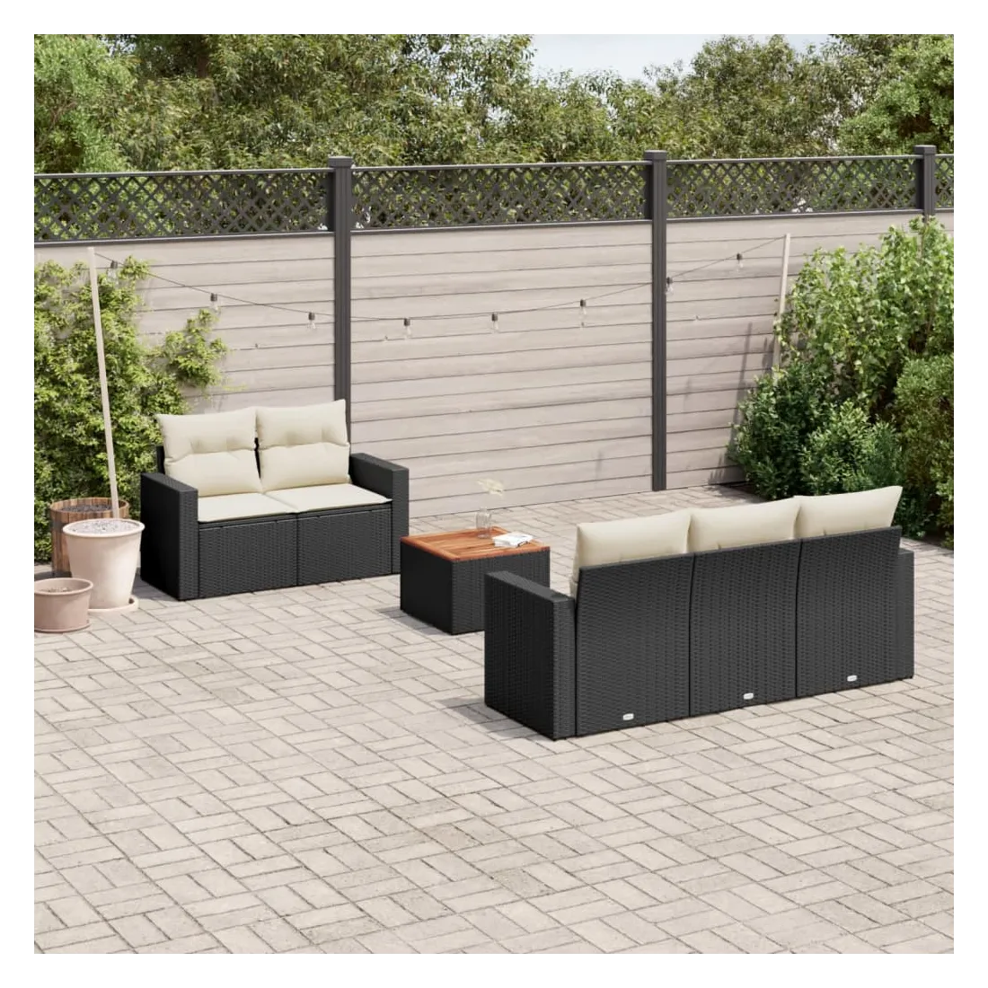 Cet ensemble de canapés de jardin est le complément parfait de votre arrière-cour, terrasse ou patio, offrant un espace confortable et accueillant pour discuter avec la famille et les amis ou simplement se détendre et profiter de l'extérieur. Matériau durable : la résine tressée, également connue sous le nom de poly rotin, est un matériau synthétique solide et nécessitant peu d'entretien qui ressemble au rotin naturel. Il est léger, facile à nettoyer et couramment utilisé pour les meubles d'extérieur en raison de sa durabilité et de ses propriétés de résistance aux intempéries.Expérience d'assise confortable : ce mobilier d'extérieur, doté de coussins épais, offre une expérience d'assise confortable.Dessus stable et facile à nettoyer : cette table de jardin a un dessus en bois d'acacia robuste, durable et facile à nettoyer avec un chiffon humide.Housse amovible et lavable : ces coussins de siège sont dotés de housses amovibles pour un lavage et un entretien faciles.Conception modulaire : cet ensemble de meubles d'extérieur a une conception modulaire, ce qui le rend complètement flexible et facile à déplacer, afin que vous puissiez créer un agencement de meubles d'extérieur personnalisé. Bon à savoir :Pour que vos meubles d'extérieur restent beaux, nous vous recommandons de les protéger avec une housse imperméable.