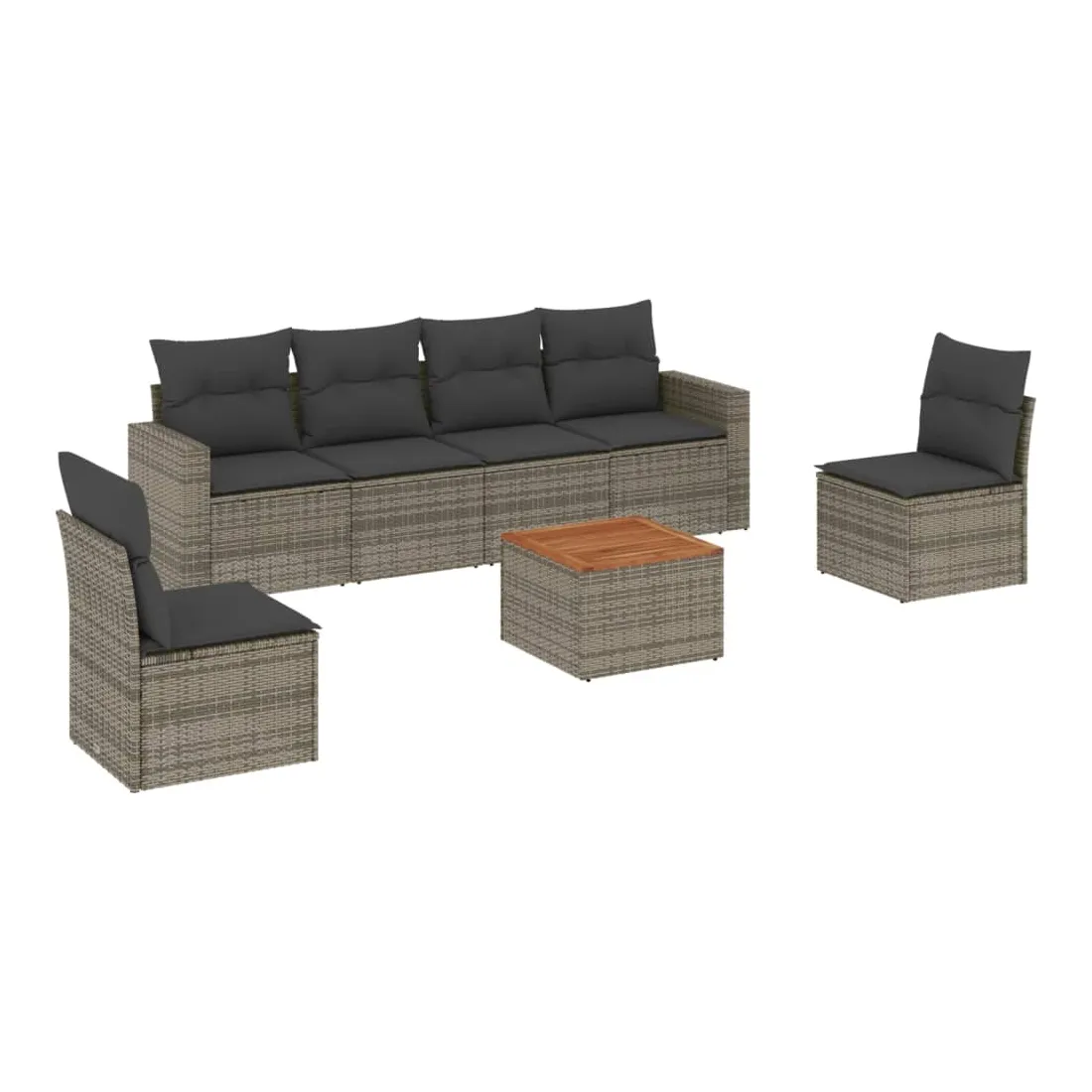 Cet ensemble de canapés de jardin est le complément parfait de votre arrière-cour, terrasse ou patio, offrant un espace confortable et accueillant pour discuter avec la famille et les amis ou simplement se détendre et profiter de l'extérieur. Matériau durable : la résine tressée, également connue sous le nom de poly rotin, est un matériau synthétique solide et nécessitant peu d'entretien qui ressemble au rotin naturel. Il est léger, facile à nettoyer et couramment utilisé pour les meubles d'extérieur en raison de sa durabilité et de ses propriétés de résistance aux intempéries.Expérience d'assise confortable : ce mobilier d'extérieur, doté de coussins épais, offre une expérience d'assise confortable.Dessus stable et facile à nettoyer : cette table de jardin a un dessus en bois d'acacia robuste, durable et facile à nettoyer avec un chiffon humide.Housse amovible et lavable : ces coussins de siège sont dotés de housses amovibles pour un lavage et un entretien faciles.Conception modulaire : cet ensemble de meubles d'extérieur a une conception modulaire, ce qui le rend complètement flexible et facile à déplacer, afin que vous puissiez créer un agencement de meubles d'extérieur personnalisé. Bon à savoir :Pour que vos meubles d'extérieur restent beaux, nous vous recommandons de les protéger avec une housse imperméable.