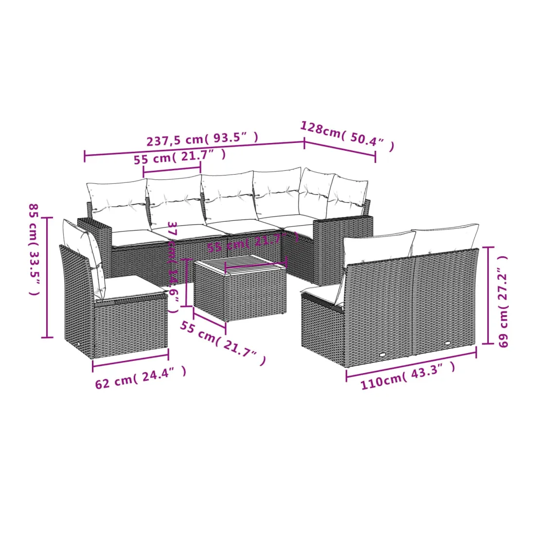 Cet ensemble de canapés de jardin est le complément parfait de votre arrière-cour, terrasse ou patio, offrant un espace confortable et accueillant pour discuter avec la famille et les amis ou simplement se détendre et profiter de l'extérieur. Matériau durable : la résine tressée, également connue sous le nom de poly rotin, est un matériau synthétique solide et nécessitant peu d'entretien qui ressemble au rotin naturel. Il est léger, facile à nettoyer et couramment utilisé pour les meubles d'extérieur en raison de sa durabilité et de ses propriétés de résistance aux intempéries.Expérience d'assise confortable : ce mobilier d'extérieur, doté de coussins épais, offre une expérience d'assise confortable.Dessus stable et facile à nettoyer : cette table de jardin a un dessus en bois d'acacia robuste, durable et facile à nettoyer avec un chiffon humide.Housse amovible et lavable : ces coussins de siège sont dotés de housses amovibles pour un lavage et un entretien faciles.Conception modulaire : cet ensemble de meubles d'extérieur a une conception modulaire, ce qui le rend complètement flexible et facile à déplacer, afin que vous puissiez créer un agencement de meubles d'extérieur personnalisé. Bon à savoir :Pour que vos meubles d'extérieur restent beaux, nous vous recommandons de les protéger avec une housse imperméable.