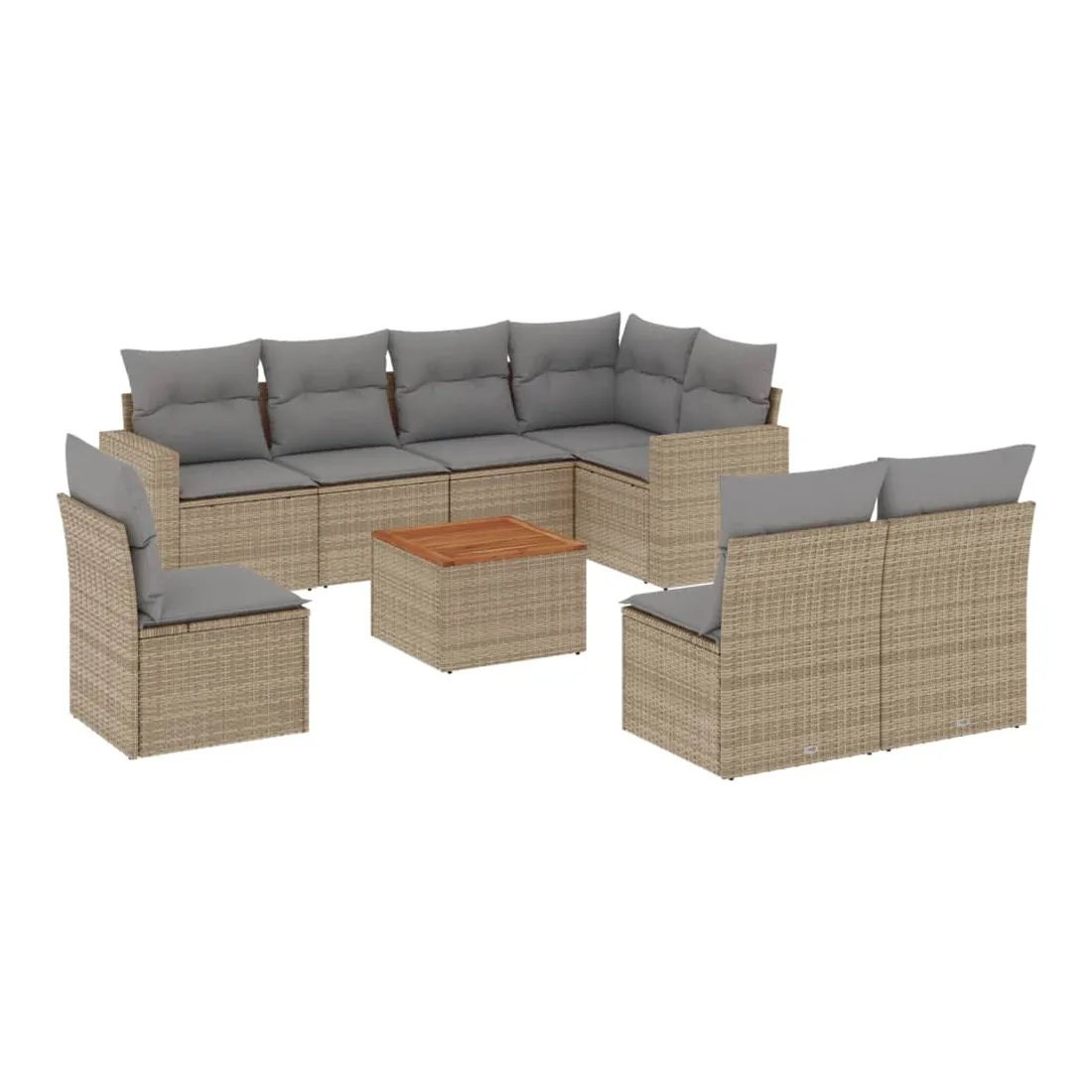 Cet ensemble de canapés de jardin est le complément parfait de votre arrière-cour, terrasse ou patio, offrant un espace confortable et accueillant pour discuter avec la famille et les amis ou simplement se détendre et profiter de l'extérieur. Matériau durable : la résine tressée, également connue sous le nom de poly rotin, est un matériau synthétique solide et nécessitant peu d'entretien qui ressemble au rotin naturel. Il est léger, facile à nettoyer et couramment utilisé pour les meubles d'extérieur en raison de sa durabilité et de ses propriétés de résistance aux intempéries.Expérience d'assise confortable : ce mobilier d'extérieur, doté de coussins épais, offre une expérience d'assise confortable.Dessus stable et facile à nettoyer : cette table de jardin a un dessus en bois d'acacia robuste, durable et facile à nettoyer avec un chiffon humide.Housse amovible et lavable : ces coussins de siège sont dotés de housses amovibles pour un lavage et un entretien faciles.Conception modulaire : cet ensemble de meubles d'extérieur a une conception modulaire, ce qui le rend complètement flexible et facile à déplacer, afin que vous puissiez créer un agencement de meubles d'extérieur personnalisé. Bon à savoir :Pour que vos meubles d'extérieur restent beaux, nous vous recommandons de les protéger avec une housse imperméable.