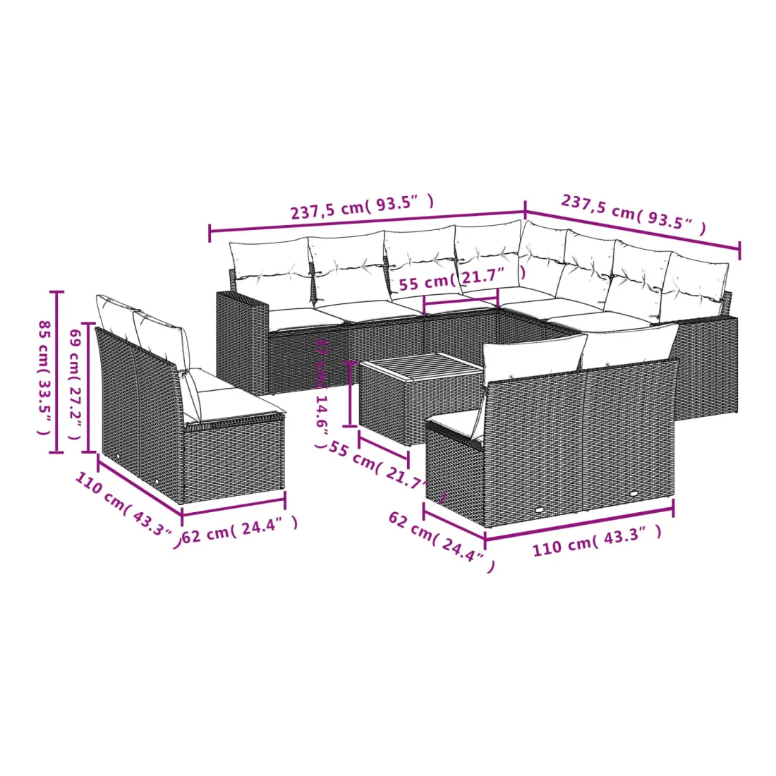 - Dimensions du coussin de dossier : 55 x 45 x 13 cm (L x l x é)