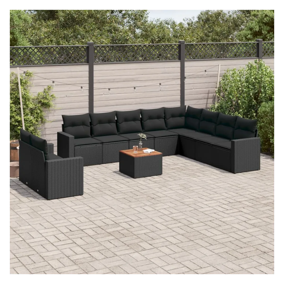 Cet ensemble de canapés de jardin est le complément parfait de votre arrière-cour, terrasse ou patio, offrant un espace confortable et accueillant pour discuter avec la famille et les amis ou simplement se détendre et profiter de l'extérieur. Matériau durable : la résine tressée, également connue sous le nom de poly rotin, est un matériau synthétique solide et nécessitant peu d'entretien qui ressemble au rotin naturel. Il est léger, facile à nettoyer et couramment utilisé pour les meubles d'extérieur en raison de sa durabilité et de ses propriétés de résistance aux intempéries.Expérience d'assise confortable : ce mobilier d'extérieur, doté de coussins épais, offre une expérience d'assise confortable.Dessus stable et facile à nettoyer : cette table de jardin a un dessus en bois d'acacia robuste, durable et facile à nettoyer avec un chiffon humide.Housse amovible et lavable : ces coussins de siège sont dotés de housses amovibles pour un lavage et un entretien faciles.Conception modulaire : cet ensemble de meubles d'extérieur a une conception modulaire, ce qui le rend complètement flexible et facile à déplacer, afin que vous puissiez créer un agencement de meubles d'extérieur personnalisé. Bon à savoir :Pour que vos meubles d'extérieur restent beaux, nous vous recommandons de les protéger avec une housse imperméable.